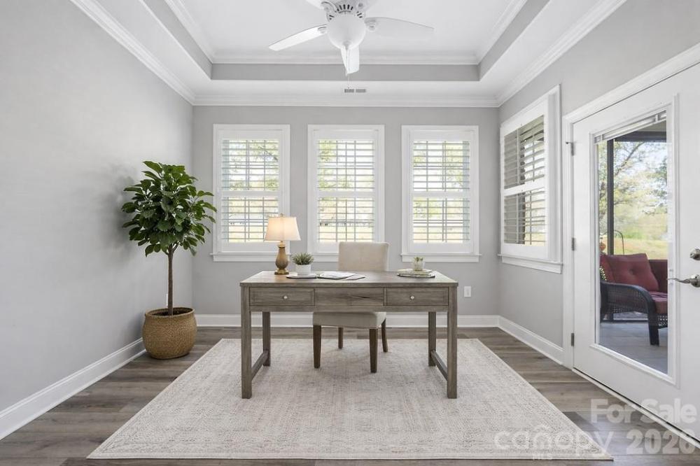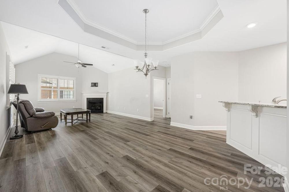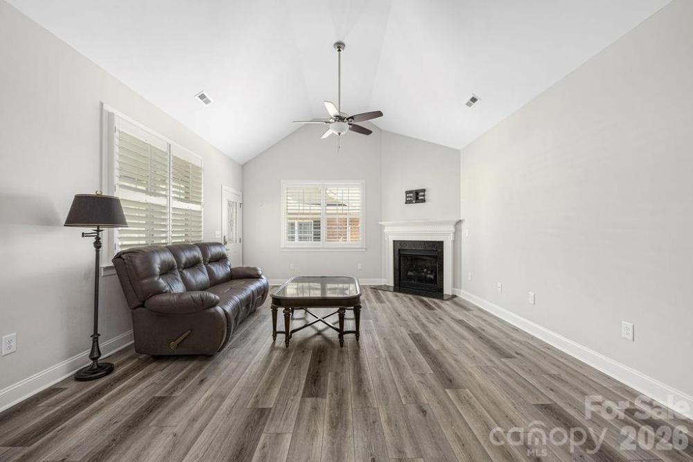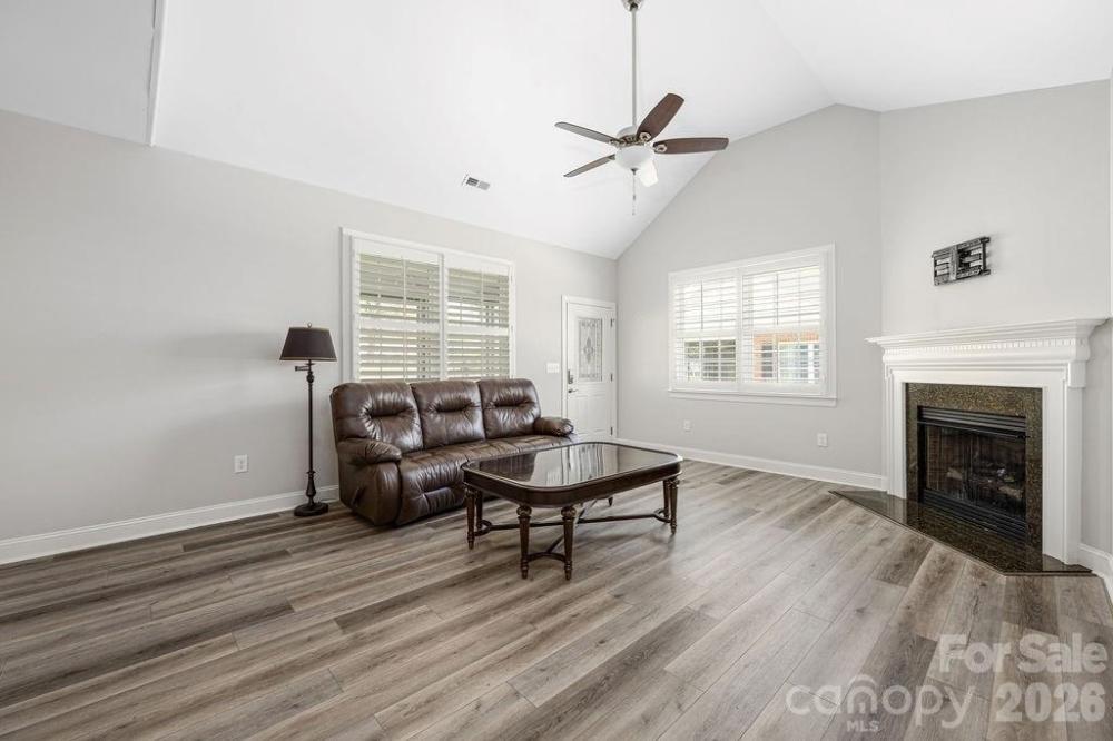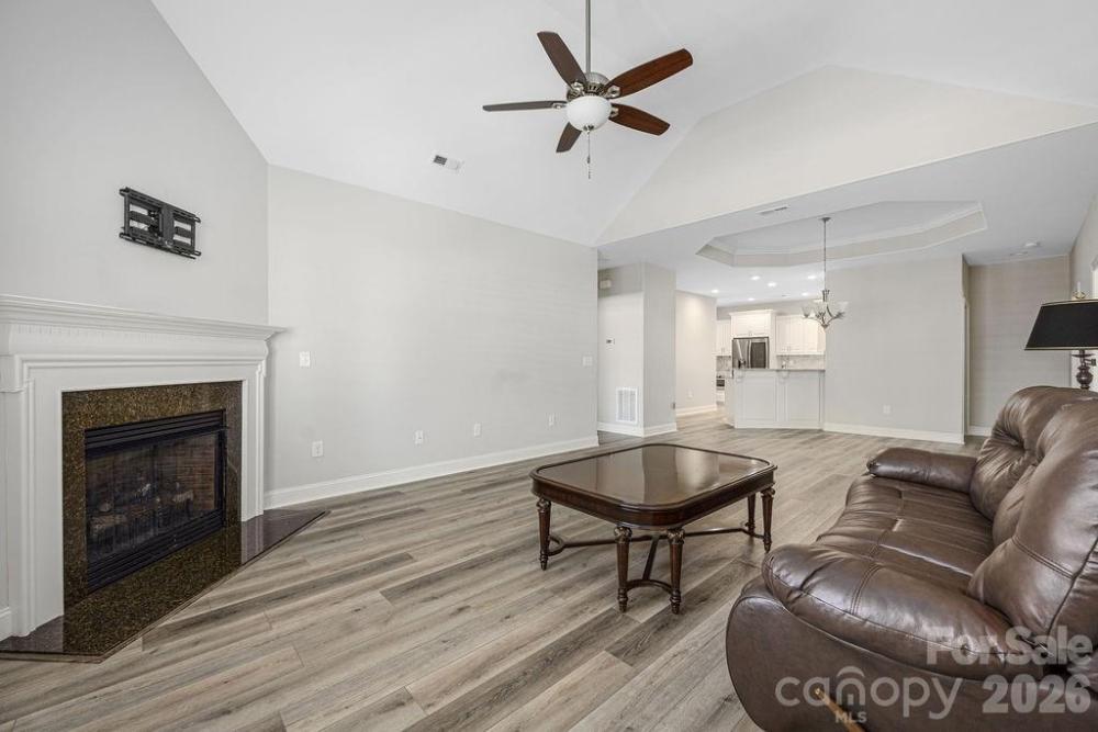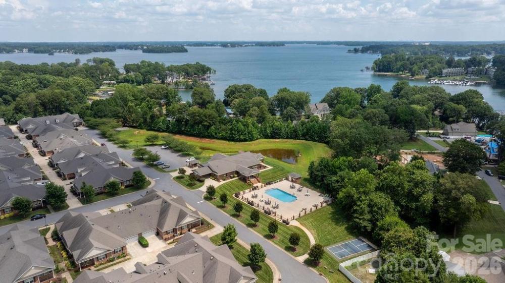 Nestled in the highly sought after, 55+ community of 3 Cherry Way, this like-new 2 bedroom, 2 bath home is move-in ready. Step inside to discover vaulted ceilings, abundant natural light, and thoughtful architectural details throughout. The property features an open, split-bedroom floor plan, with beautiful LVP flooring in the main living areas and primary bedroom, complemented by plantation shutters. The stunning kitchen showcases white cabinets with pullouts, a stylish backsplash, granite countertops, a pantry with custom built-ins, a gas cook top with cabinet hood, and stainless steel appliances. Overlooking the dining area and spacious great room with a gas fireplace, this kitchen is ideal for both everyday living and entertaining. The large primary suite features a double tray ceiling and a luxurious bath with tile flooring, a spacious tile shower, dual vanities with granite countertops, and a walk-in closet with custom built-ins. Additional highlights include a flexible sun room or study, a second bedroom, a full bath, and a generous laundry area. Ample storage is available with a walk-up unfinished attic space. Outdoors, enjoy a spacious screened porch with sun blinds, perfect for enjoying morning coffee, and a two-car garage with an epoxy floor. The washer and dryer, kitchen refrigerator, and wooden shelving unit in the garage convey. At 3 Cherry Way, residents enjoy a range of community amenities, including boat and RV storage, an outdoor pool, a pickleball court, and a clubhouse equipped with a billiard table, fitness room, and meeting spaces. Lawn maintenance is provided, and convenient access to the lake is just around the corner. This home is truly a must-see!