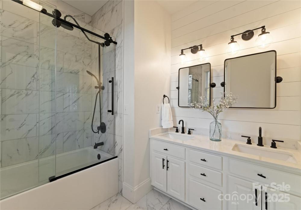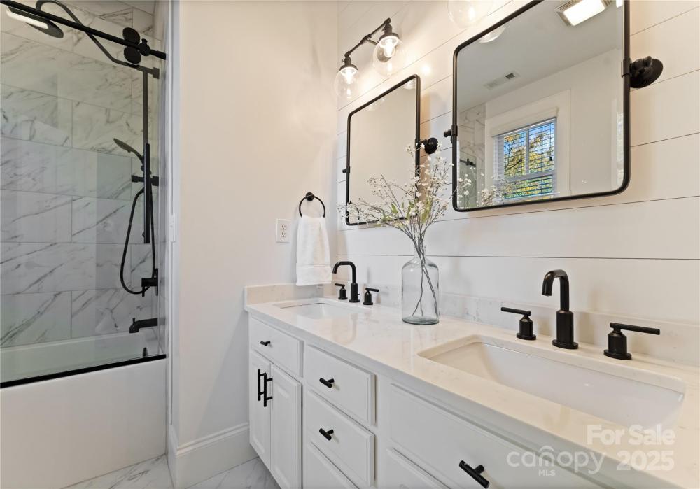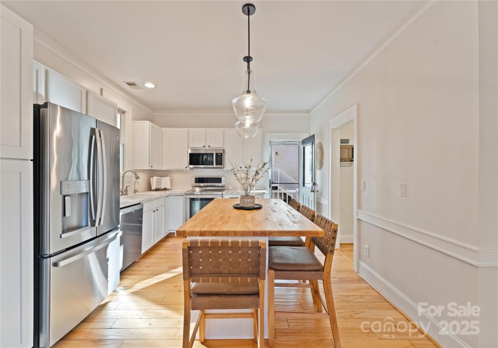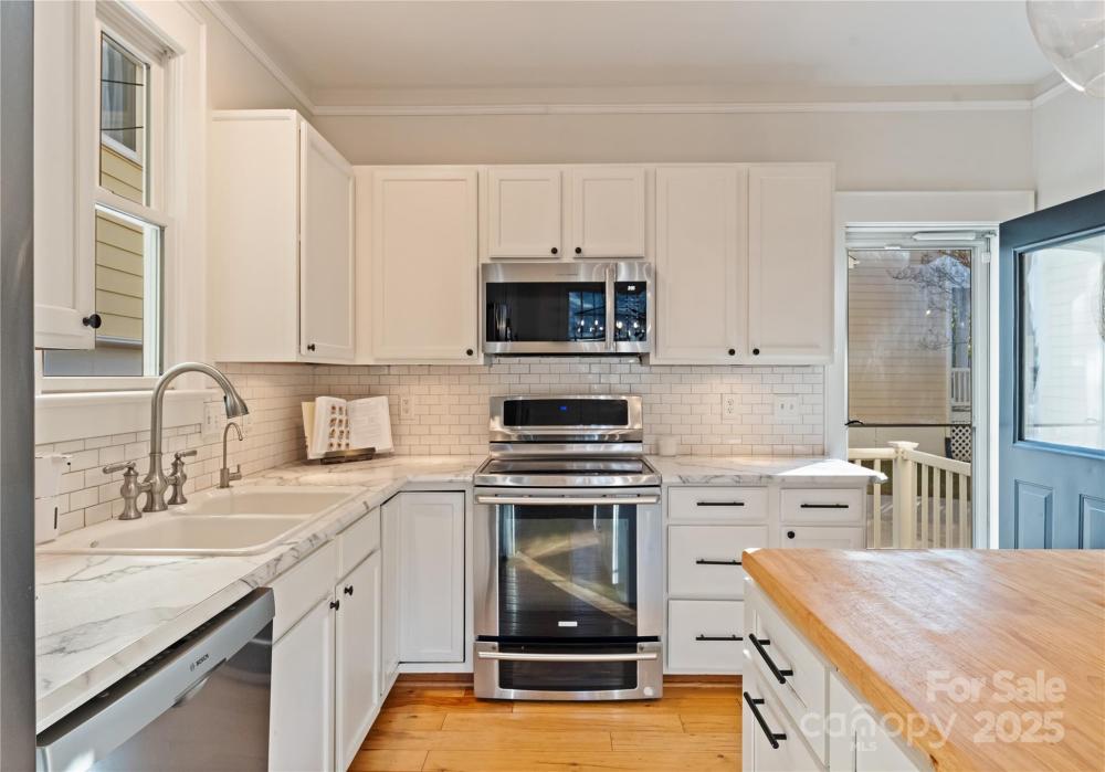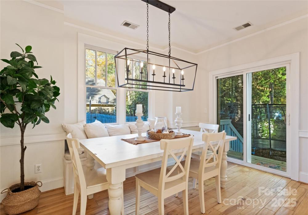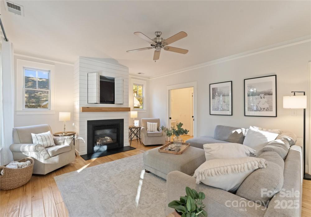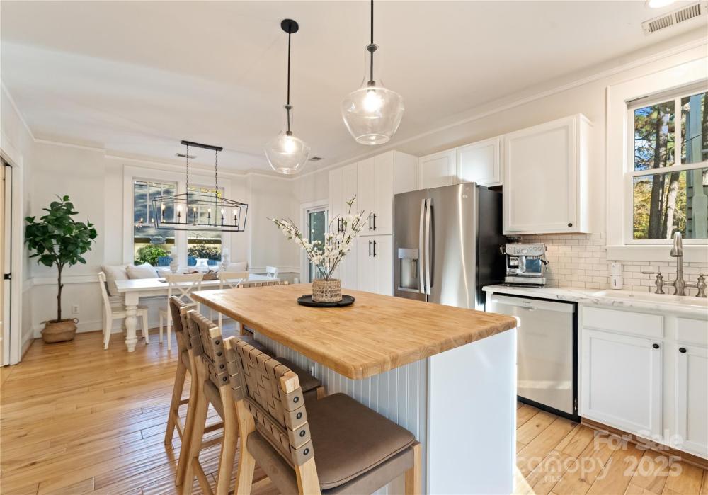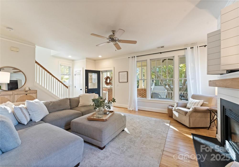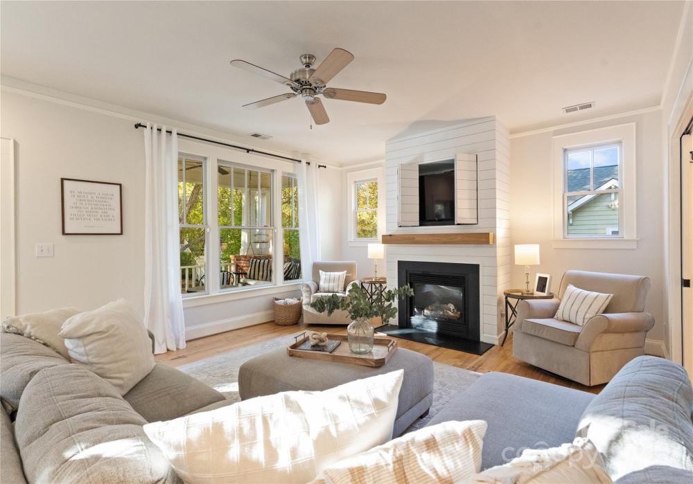 Charming Craftsman in the heart of Huntersville, offering walkable convenience and a finished bedroom/ bonus room and full bath above the garage! Sunlight fills every corner in this beautifully updated home. The renovated kitchen (2024) is the heart of the home, featuring a new island w/ butcher-block top, dual cabinet pantries, GE French Door fridge (2024), microwave (2025), Bosch dishwasher (2022), and under-sink 7-stage water filtration system. A custom window bench adds style and storage, while the new sliding glass door opens to a backyard retreat complete with new deck steps, grilling paver patio, and café-style string lights. The living room showcases custom shiplap and a hidden TV cabinet above the gas fireplace and a playful under-stairs nook. Additional flex space adds versatility, perfect for an office, storage, or built-in pantry. Hand Scraped Wood Birch flooring throughout the main level. The primary bath renovation brings spa-like comfort with a tile surround shower and tub combo, sliding glass doors, and shiplap detail. Other major updates include both water heaters (2024/2025), garage door LiftMaster myQ motor and springs (2025), and Roof replacement in 2011. The finished room over the 2-car garage offers a full bath, newer mini-split, and endless possibilities as an office, gym, or guest suite. Outdoors, enjoy river rock landscaping, fully fenced backyard, extended driveway (2021), and rocking chair front porch.