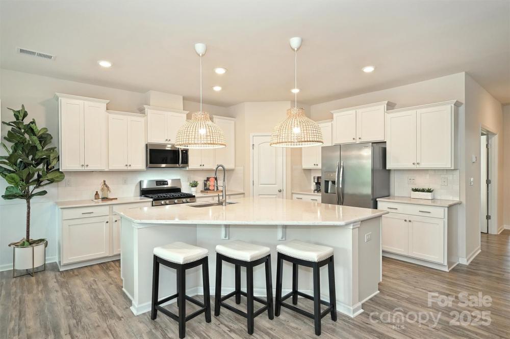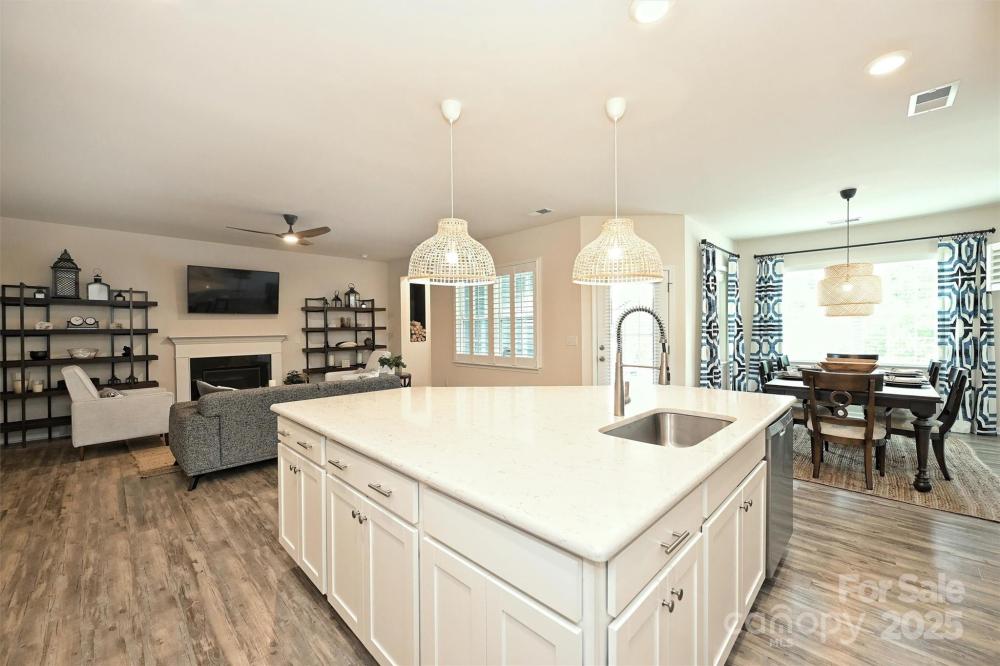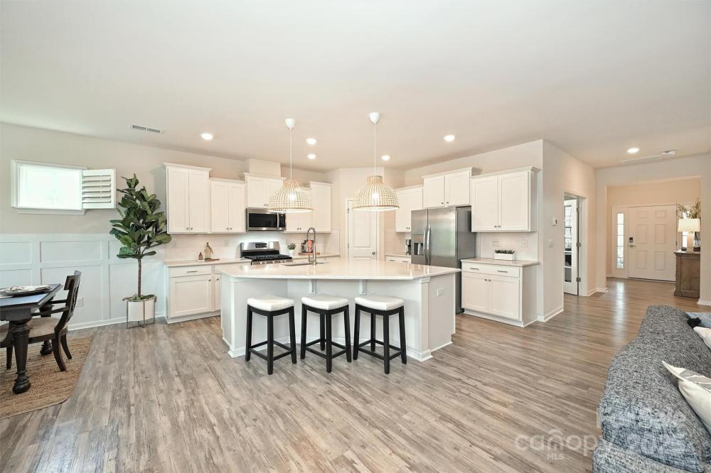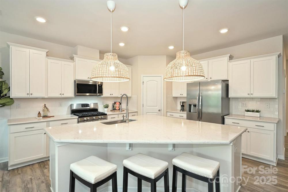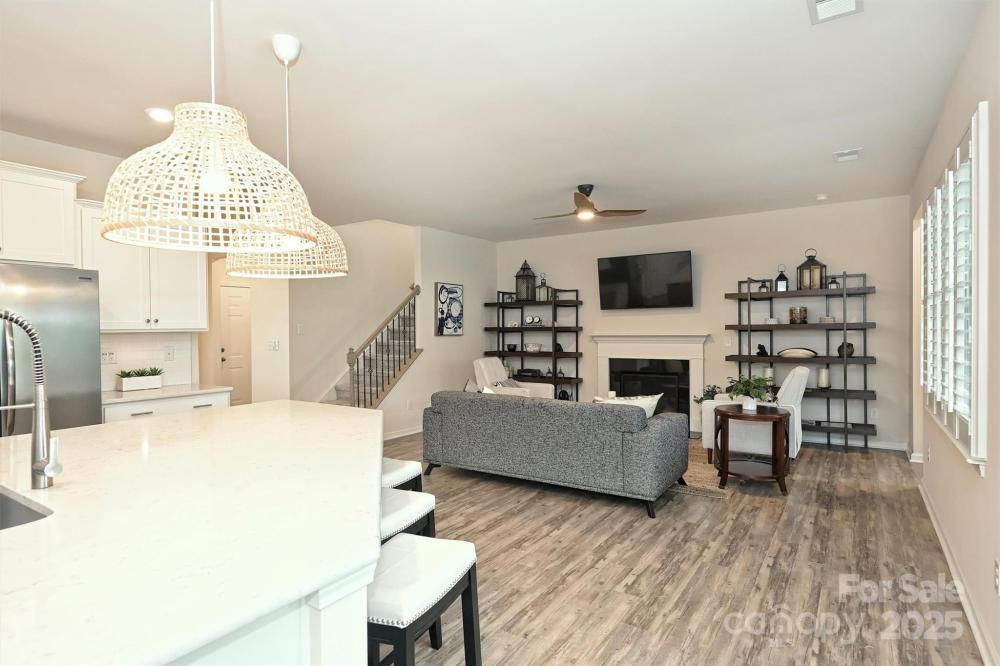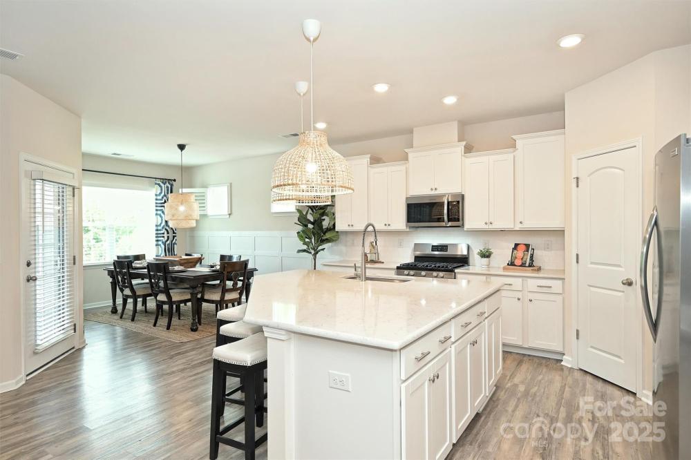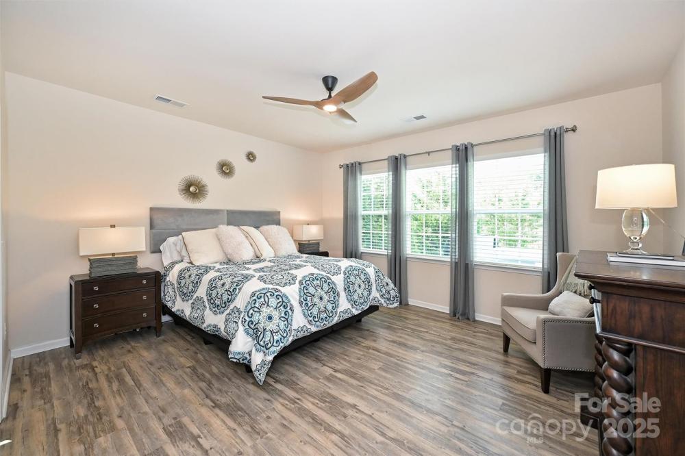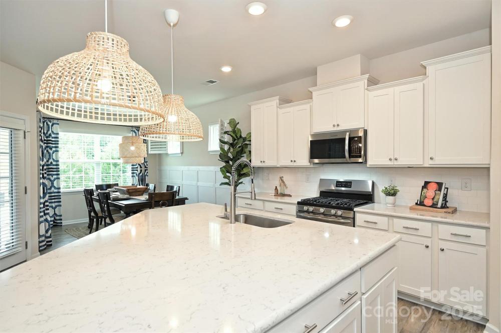 Immaculate 3 Bedroom / 3 Bath home with open floor plan and Primary Suite on the main! The main level also features a designated Office plus a Guest Suite with Full Bath—perfect for visitors or multigenerational living. The stunning Kitchen offers white cabinetry, an oversized Quartz island, and designer lighting, opening seamlessly to the living and dining areas for easy entertaining. Upgraded ceiling fans enhance comfort both indoors and on the covered back patio. Upstairs, a spacious Media/Bonus Room and third Bedroom with a Full Bath provides the perfect retreat. Step outside to a professionally designed paver patio with a Hot Springs saltwater spa, overlooking open space for added privacy and relaxation. The home’s exterior has been freshly painted, and the garage features a professionally coated epoxy floor with additional workshop space. See the attached Features page for a full list of all the upgrades this home has to offer. Washer and dryer both convey with home. Arrington is a hidden gem! Just 15 miles (24 minutes) to Uptown Charlotte, 3 miles to I-77, and less than 20 miles (27 minutes) to Charlotte Douglas International Airport. Enjoy nearby Birkdale Village (under 5 miles) with shopping, dining, and entertainment. Community amenities include a saltwater pool, kiddie pool, clubhouse, and playground. Don’t miss this beautifully maintained, move-in-ready home in one of the area’s most desirable areas!