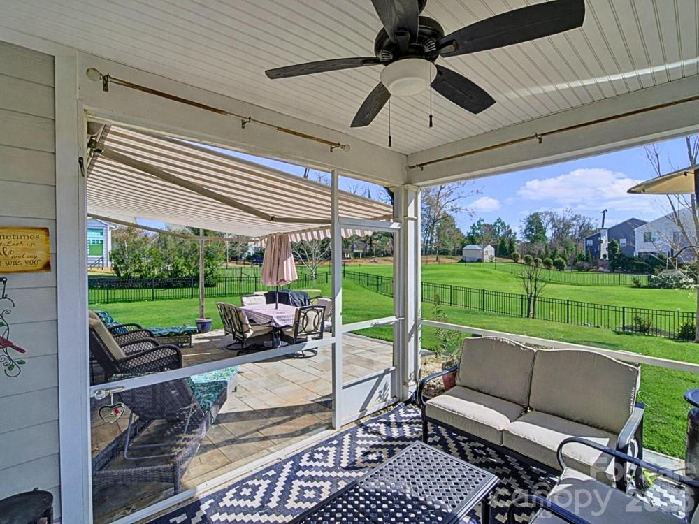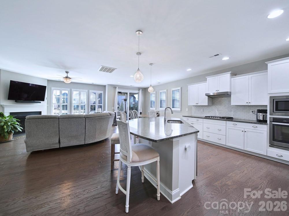 Beautiful, move-in ready home in the desirable Arrington community in Huntersville. Welcoming front porch leads inside to an open floor plan with neutral paint, hardwood floors, upgraded lighting, and plantation shutters. Featuring a gourmet kitchen with white Shaker style cabinets, oversized island with seating, granite countertops, stylish backsplash, wall oven, gas cooktop, and pantry. Adjacent dining area and family room with a cozy gas fireplace offer the ideal spaces for relaxing or entertaining. Spacious primary bedroom and ensuite that includes two vanities, separate shower, soaking tub and walk-in closet with custom shelving. Guest bedroom or flex room allows for a variety of uses. Full bathroom and laundry room complete the main level. Upstairs, all rooms have new luxury vinyl flooring. You'll find a generous loft, two additional bedrooms, a full bathroom and storage area. Enjoy outdoor living with a screened-in porch, paver patio, retractable awning, and fenced backyard. Recent updates include an irrigation system, a whole home water filtration system, and four stationary windows replaced with operable windows to enhance functionality. Three-car garage with extended driveway! Community amenities including a clubhouse, pool, children’s pool, playground, and sidewalks. Convenient access to Birkdale Village, Lake Norman, I-77, Charlotte-Douglas Airport, and Uptown Charlotte.