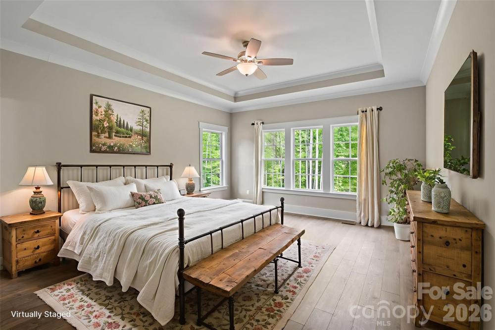 Beautiful custom new build home in Mooresville's established Autumn Grove community. Previous builder model home. Private 0.6 acre lot overlooking lush trees & forestry, w/ample cleared space that will accommodate a pool, or additional storage out building! Upgraded interior features include hard floors throughout (no carpet,) vaulted ceilings, crown molding, stone fireplace, leathered countertops, modern lighting, & tile showers! Master en-suite on main floor w/ tray ceiling, two walk-in closets, double vanities, custom glass shower, & deep soaking tub under a vaulted ceiling! Formal dining room, breakfast room, and main floor office with connecting en-suite full bath, and nice size closet! Vaulted ceiling great room w/ stone fireplace, & large windows overlooking the private back yard. Upstairs level boasts two additional generous sized bedrooms, each w/ large closets, & en-suite Jack-&-Jill bathroom. Upper level becomes complete w/ a large additional bonus room! 1Y builder's home warranty included!