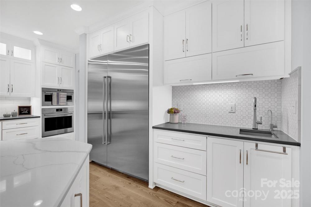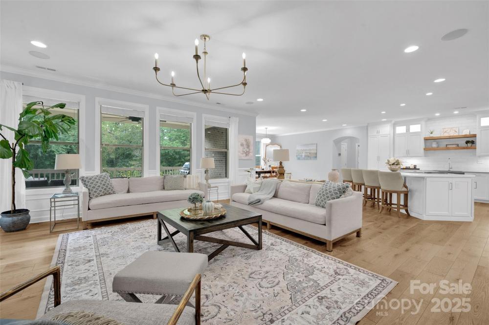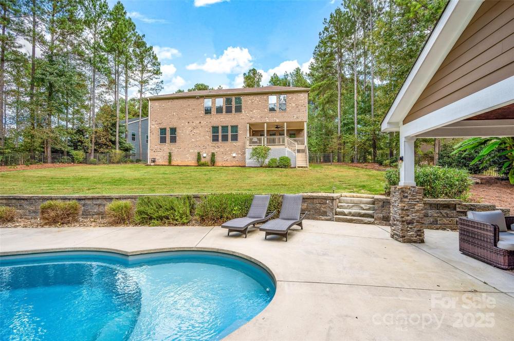 Step into refined elegance with this full-brick residence accented by timeless stonework, beautifully sited on a 1.2-acre lot that blends sophistication with resort-style living! From the inviting covered front porch to the sweeping landscaped grounds, every detail of this home has been designed to impress! Inside, gleaming hardwood floors flow throughout the main level, leading you to a spectacular chef’s kitchen that combines function with luxury. Crisp white cabinetry pairs beautifully with shimmering quartz countertops, while a Wolf range with four burners and griddle, stainless Sub-Zero refrigerator and freezer, and custom finishes make this a culinary showpiece. A spacious island provides the perfect gathering spot for family and friends, while the open flow ensures effortless entertaining. A main-level bedroom & office with a full bath and laundry nearby creates the ideal private suite for guests or multi-generational living. Just off the garage, an oversized drop zone offers custom organization, keeping daily life perfectly streamlined. Upstairs, retreat to the expansive primary suite with a beautifully finished bath featuring a soaking tub, oversized tile shower, and dual vanities. A generous loft with built-in desk and cubbies provides a flexible hub for work or play, while three additional bedrooms, two full baths, and a second laundry room complete the upper level with style and convenience. The outdoor spaces are nothing short of extraordinary. At the heart of it all is a heated, temperature-controlled saltwater pool, framed by lush landscaping that feels like a tropical retreat. Imagine the fragrance of gardenias drifting through the July sunshine as you float in the pool, surrounded by flowering hibiscus, banana trees, natural dogwoods, and redbuds. Hummingbirds and butterflies add to the serene setting, transforming every summer afternoon into a postcard moment. A pool house with a covered patio and outdoor shower extends the experience with shaded lounging or al fresco dining, while a separate firepit area invites evenings of conversation under the stars. This backyard was designed for gathering, celebrating, and savoring every moment. Located within a sought-after community offering a pool, clubhouse, and tennis courts, this property seamlessly combines elegance, comfort, and lifestyle—an unparalleled place to call home. With convenient access to Stumpy Creek Lake Access and Lake Norman State Park...this is the perfect spot to call home!