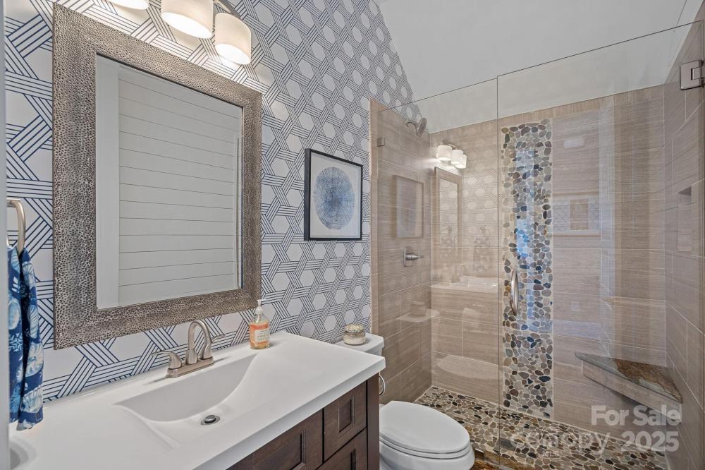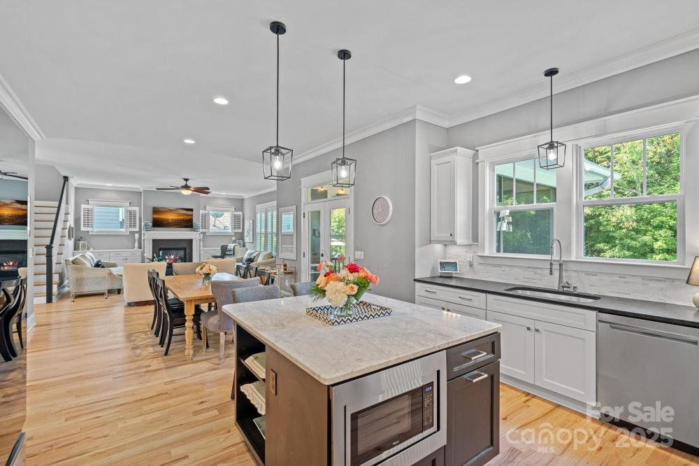 Beautiful Craftsman-Style 5 Bedroom, 4 Bathroom Home in Sought-After Cornelius! From the moment you step inside, you'll be impressed by the exceptional craftsmanship and meticulous updates throughout. This thoughtfully upgraded home boasts brand new hardwood floors (2025), a chef’s kitchen with a large island, granite countertops, Butler’s pantry, wine fridge, gas stove with custom hood—all seamlessly flowing into the inviting living room with a cozy fireplace, perfect for entertaining. Additional features include expansive closets and pantry space, a practical drop zone, and an extended garage area ideal for extra storage or a workshop. Step out to the screened-in porch and take in the view of the large ½-acre lot, which includes a 30x30 basketball court, sealed crawl space with a dehumidifier (2024), and an in-ground irrigation system. Upstairs, the spacious primary suite offers a spa-like ensuite bathroom, while three additional oversized bedrooms each include generous closet space. A main-level guest suite adds convenience and flexibility. Fully custom from top to bottom—this home checks every box! Convenient sidewalk-lined streets on Bethel church road, provide safe and easy access to local parks, restaurants, and Lake Norman.