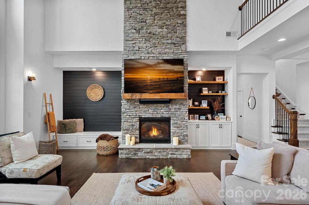 The two-story great room, with a floor-to-ceiling custom stone fireplace, is the heart of the home and opens to the fully equipped chef's kitchen. On the main floor, a large, bright office with custom doors and an accent wall is complemented by a bed/flex room that could serve as a second office, play area, or guest bedroom. The primary suite, laundry room, and 3 additional bedrooms are on the upper level. Plantation shutters throughout the home, a sound system, a security system, new seamless gutters with guards, a wall-mounted storage system in the garage, and more. Space for all, with 3.5 baths and a spacious, oversized 3-car garage, this residence also includes a drop zone and a walk-in pantry, providing ample storage and functionality.