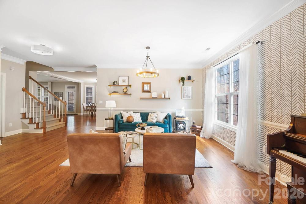 BROOKHAVEN BASEMENT BEAUTY! Welcome to this exceptional BASEMENT home located in one of the area's most sought-after communities. Known for its outstanding amenities and top-rated schools, Brookhaven is an absolute gem. Perfectly positioned on a quiet, low-traffic street, this RARE basement home is just a short walk to the neighborhood resort style pool, lazy river, tennis courts, walking trails and elementary school. Thoughtfully designed for both comfortable living and effortless entertaining, the main level features a bright, open-concept layout anchored by a beautifully updated white granite kitchen with an oversized island. Designer wallpaper and upgraded light fixtures throughout the home add style, character and a custom feel. Thoughtful details like a walk-in pantry and dedicated mudroom are features not often found in this neighborhood and add to the convenience and functionality. Upstairs, a generous loft flanked by four bedrooms provides a flexible living space perfect for a home office, hangout room or playroom. The oversized primary suite offers a wall of built-ins and reading nook, bright windows overlooking the backyard and two walk-in closets for exceptional storage. The finished basement expands your living space even further, complete with a media area, game room space, wet bar and a private bedroom with full bathroom-ideal for hosting guests or multi-generational living. Step outside to the screeded porch overlooking a private, wooded backyard, creating the perfect retreat for relaxing evenings. Additional highlights include an oversized two-car garage and irrigation system servicing both the front and back yards. Top-rated Weddington schools and low taxes. This home offers space, style and an unbeatable location-a rare opportunity in a truly premier neighborhood. This one is a GEM!