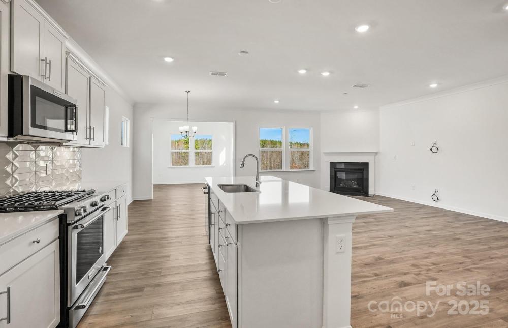 The Kirby plan is designed for effortless main-level living! The spacious primary suite and a convenient home office are both located on the first floor. Step into the beautifully appointed kitchen, featuring upscale finishes and premium KitchenAid gas appliances, and enjoy nature views of your backyard from the inviting the cozy sunroom. Surrounded by windows, the sunroom creates the perfect spot to relax, while the large outdoor patio offers a seamless escape to nature right outside your door.