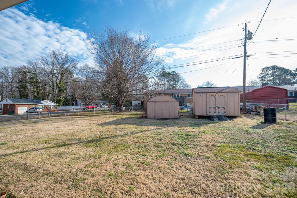 Cozy brick ranch in convenient east side location. Nearby access to shopping, dining, hospital and I-85. Come see the gleaming hardwood floors and freshly painted rooms. Fenced in backyard with two storage buildings. Spacious rooms. Dining room area is open to kitchen and opens onto patio so that one can enjoy the large fenced in back yard. 57 square foot utility room off carport. HVAC unit installed in 2024.