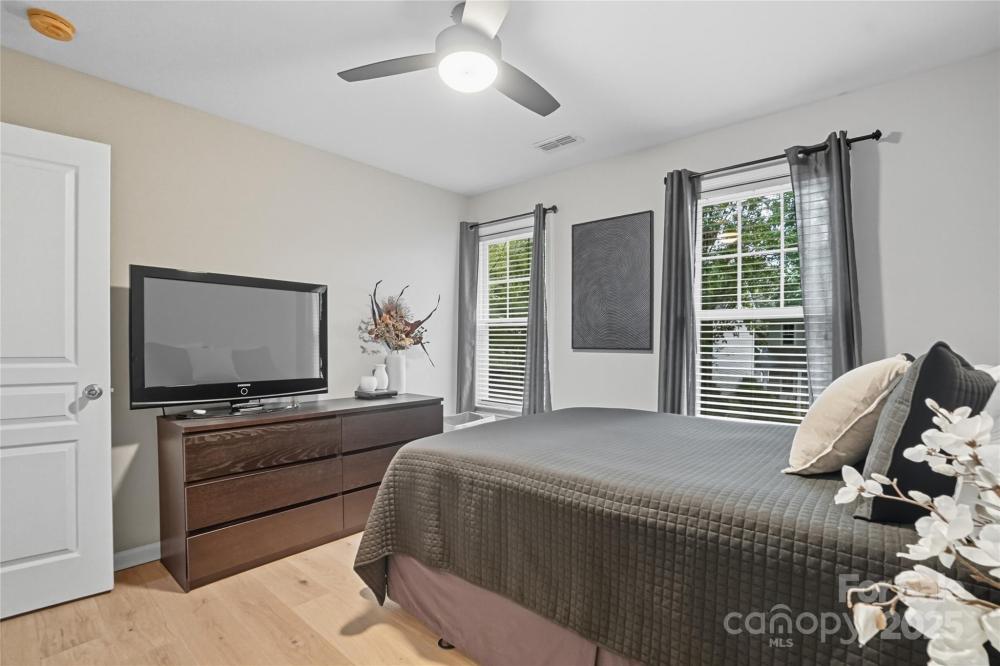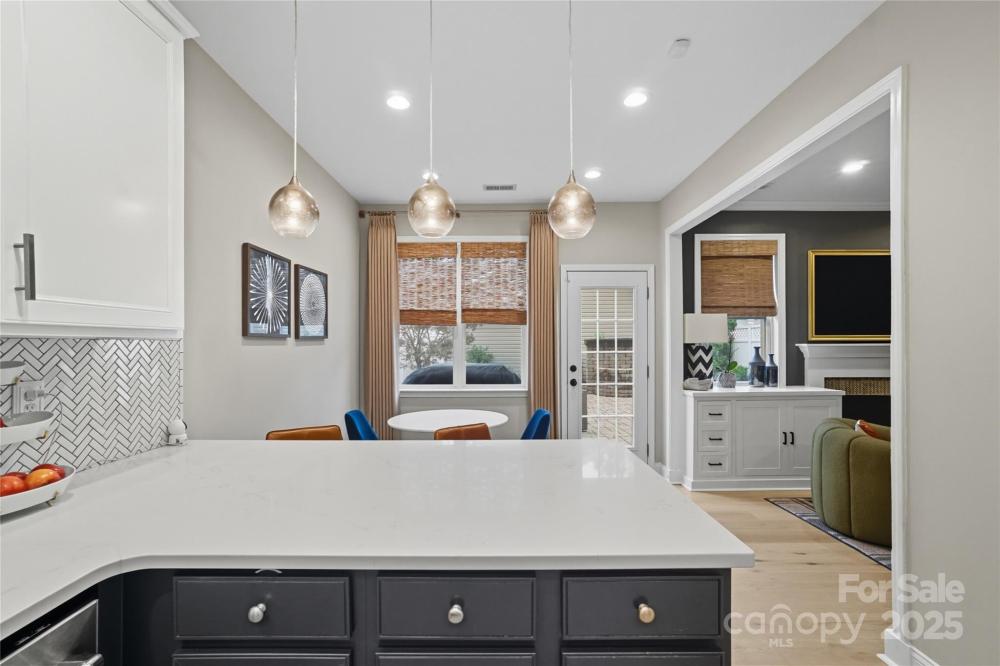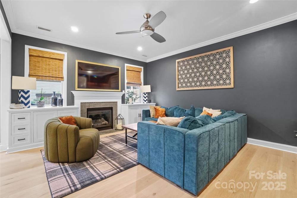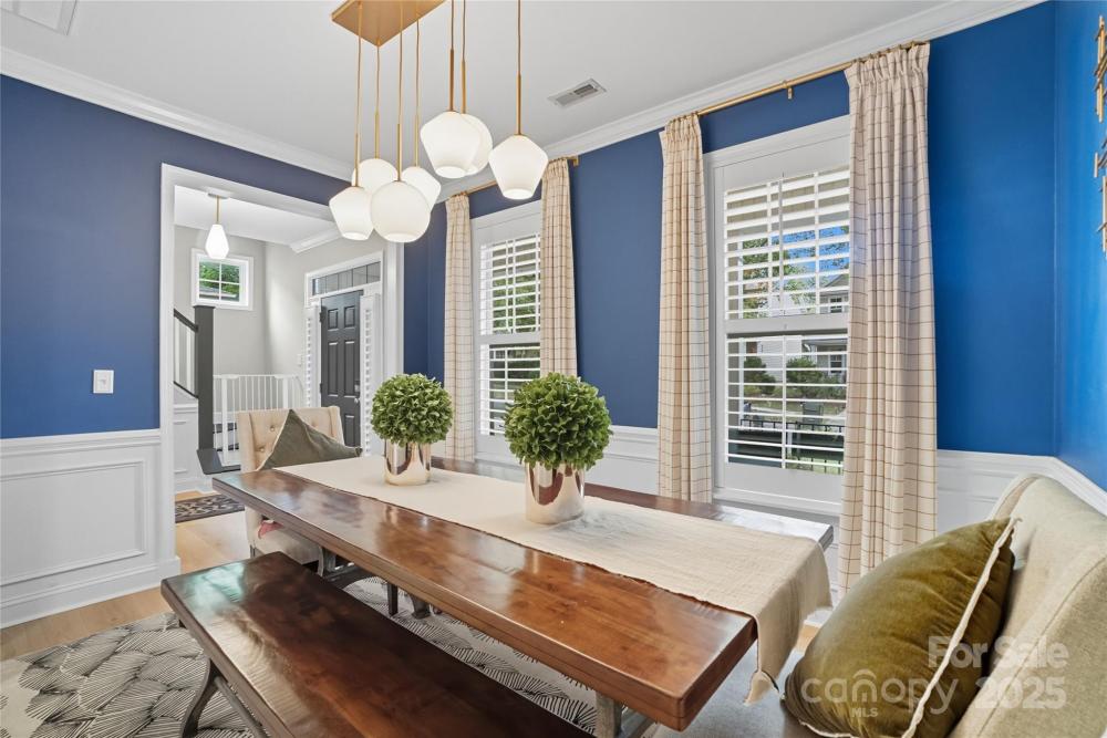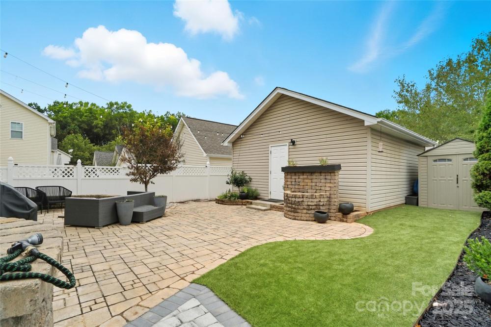 This beautifully maintained home on a corner lot is move-in ready and full of thoughtful upgrades inside and out. New HVAC!! Manufactured hardwood floors throughout, a spacious dining room with designer lighting, and custom window treatments, plus a cozy living room with crown molding, a gas fireplace, media cabinet, and tall ceilings. The kitchen is a true highlight with granite countertops, tile backsplash, stainless steel appliances including a gas range, pendant and recessed lighting—perfect for both everyday living and entertaining. Upstairs, large primary suite with vaulted ceilings and custom fixtures. The remodeled primary bath includes an upgraded tiled shower with a semi-frameless glass door. Additional attic storage with easy access. Outside, the backyard oasis features a 6-ft privacy fence, professionally installed concrete pavers, lush landscaping, a tranquil waterfall feature, and a storage shed. NO grass to cut in back as the yard is astroturf! The detached garage is insulated, drywalled, and ideal for a workshop or studio. All of this in the desirable Caldwell Station neighborhood, known for its charm and community feel. Five minute walk to the community pool center! This one won’t last!