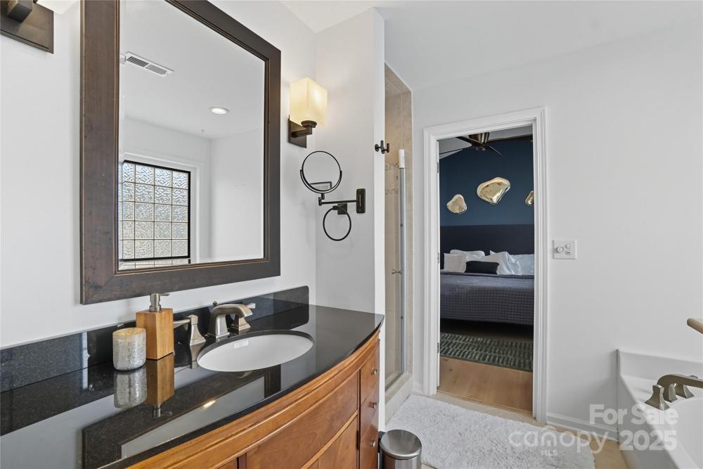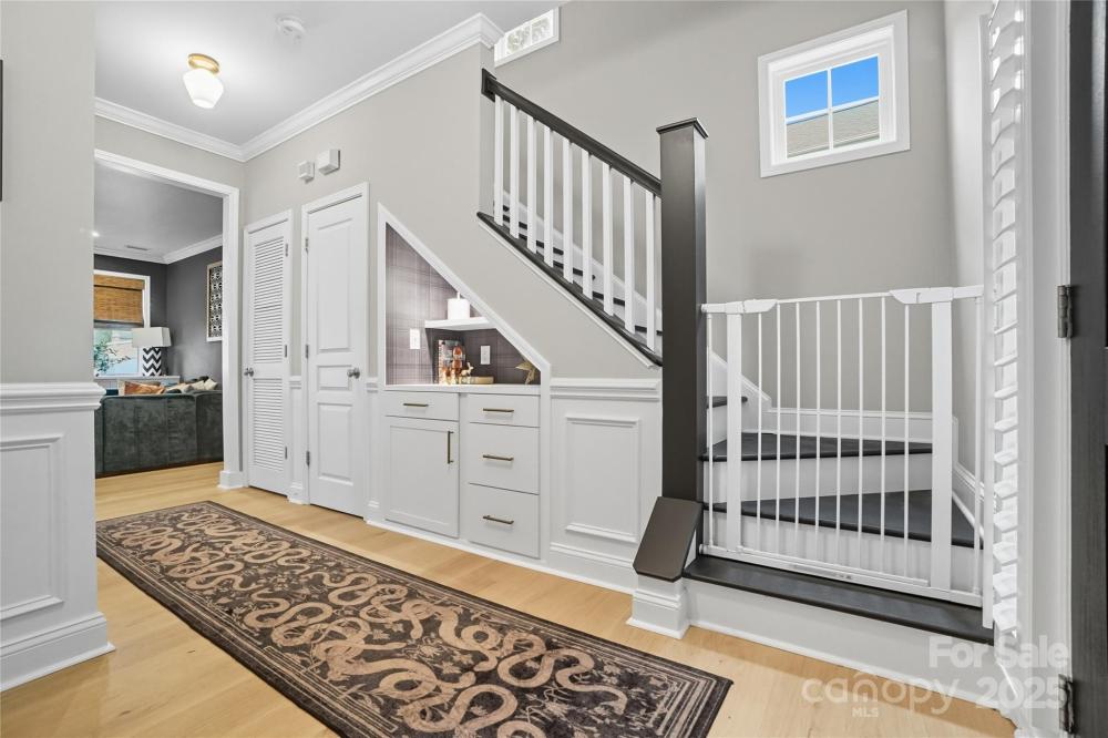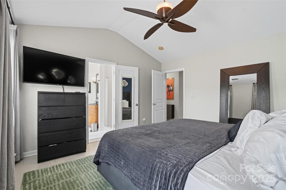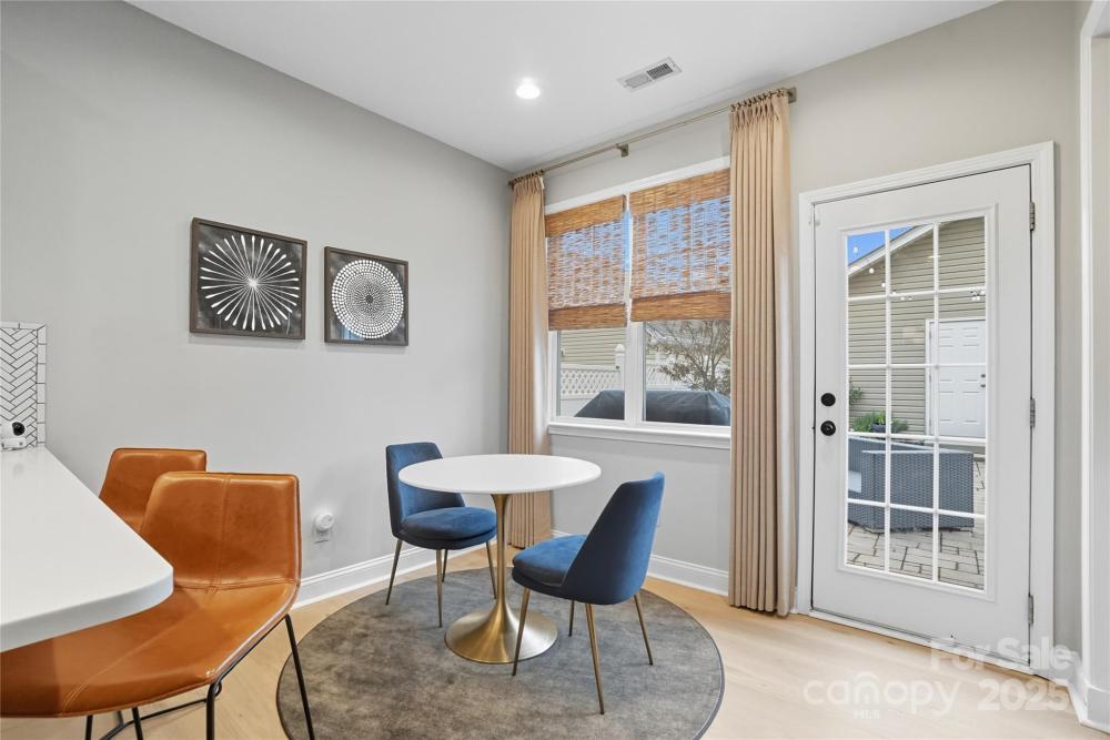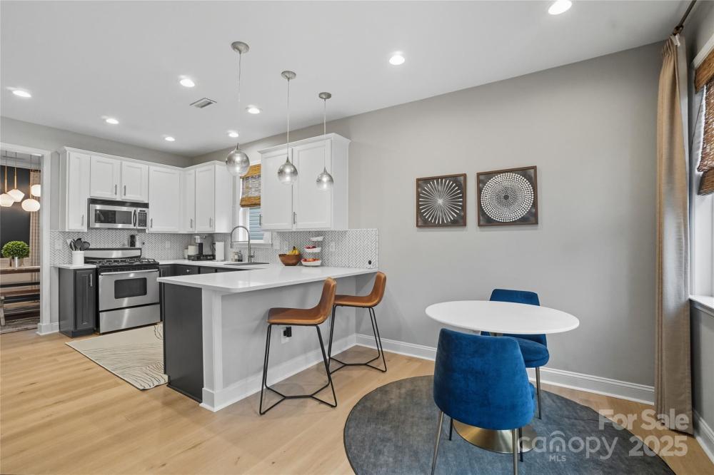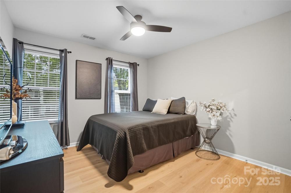 This beautifully maintained home on a corner lot is move-in ready and full of thoughtful upgrades inside and out. New HVAC!! Manufactured hardwood floors throughout, a spacious dining room with designer lighting, and custom window treatments, plus a cozy living room with crown molding, a gas fireplace, media cabinet, and tall ceilings. The kitchen is a true highlight with granite countertops, tile backsplash, stainless steel appliances including a gas range, pendant and recessed lighting—perfect for both everyday living and entertaining. Upstairs, large primary suite with vaulted ceilings and custom fixtures. The remodeled primary bath includes an upgraded tiled shower with a semi-frameless glass door. Additional attic storage with easy access. Outside, the backyard oasis features a 6-ft privacy fence, professionally installed concrete pavers, lush landscaping, a tranquil waterfall feature, and a storage shed. NO grass to cut in back as the yard is astroturf! The detached garage is insulated, drywalled, and ideal for a workshop or studio. All of this in the desirable Caldwell Station neighborhood, known for its charm and community feel. Five minute walk to the community pool center! This one won’t last!