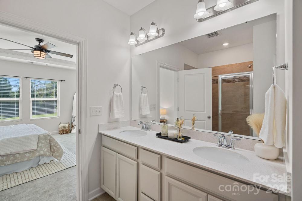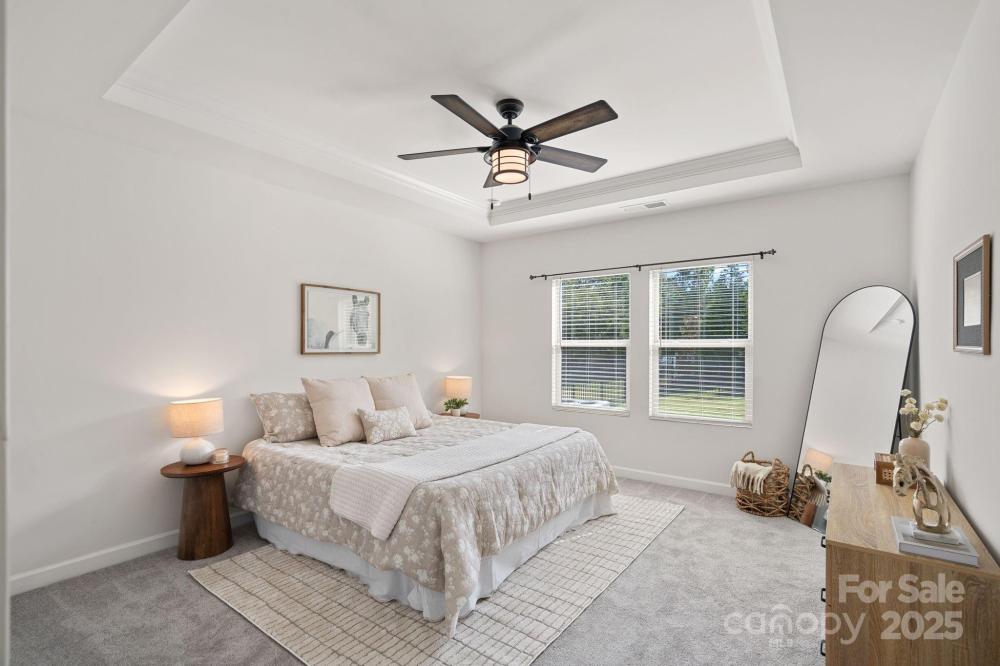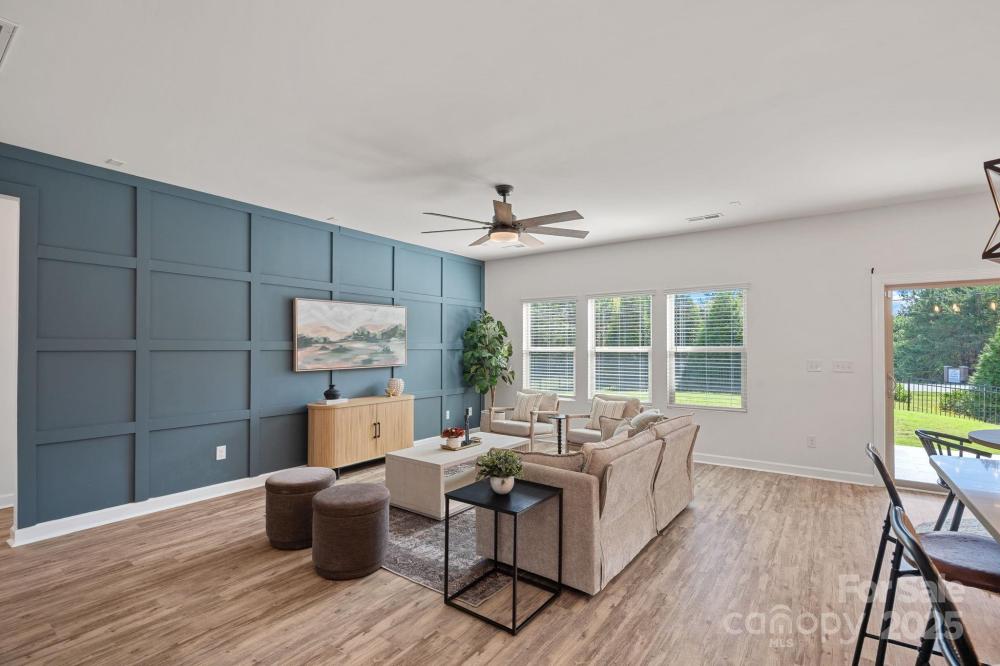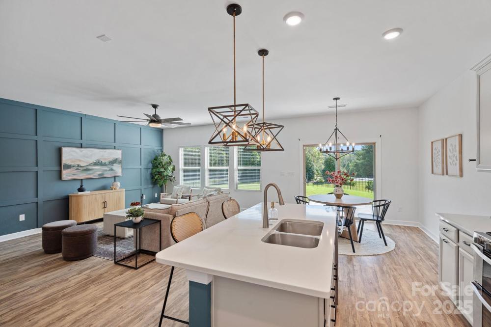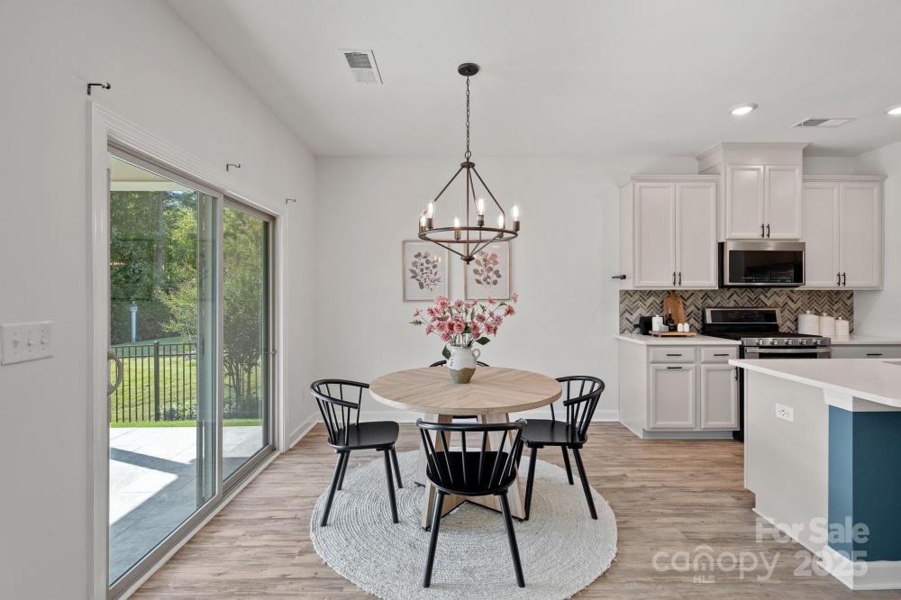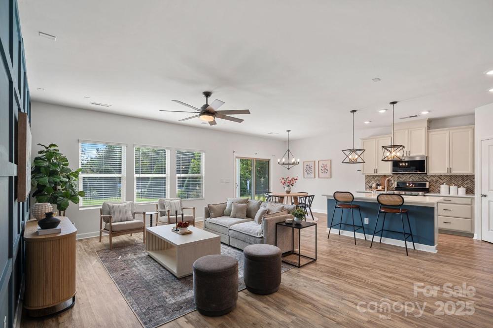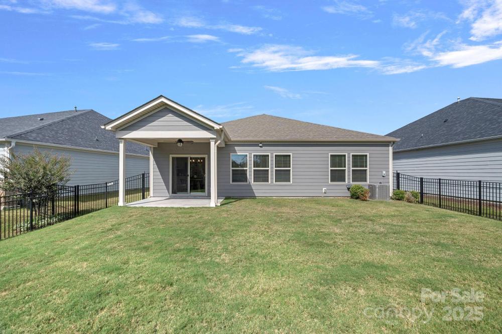Welcome to your stunning, like-new home in the desirable Canopy Creek Community with Fresh Paint & Brand New Carpet. Step inside and be greeted by sophisticated design elements that set this home apart. Vinyl plank flooring flows seamlessly throughout the open main living areas, complementing the coffered wall detailing in the great room—perfect for entertaining. The entry hallway boasts charming board and batten wainscoting, adding a touch of classic craftsmanship. This 3-bedroom, 2-bathroom residence is designed for modern living, showcasing a chef's kitchen with quartz countertops, a gas range, with a double oven, all flowing into the dining and living area. The primary suite offers a tray ceiling and a stylish bathroom with a tile shower, walk-in closet, and linen closet. Enjoy year-round entertaining on the covered patio with porcelain tiles, overlooking the secure fully fenced backyard. The HOA in Canopy Creek takes care of the lawn maintenance, freeing up your weekends. You'll also have access to incredible community amenities, including a refreshing outdoor pool and scenic walking trails. For the avid golfers, Verdict Ridge Golf Course is located just across the street! Don't miss the opportunity to own this exceptional home where luxury meets low-maintenance living!