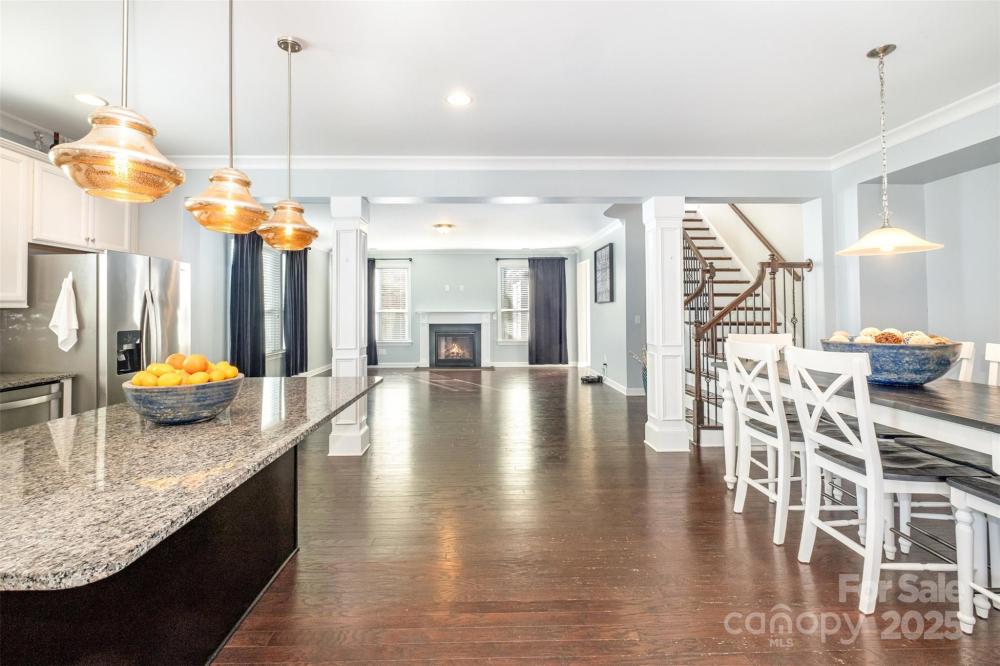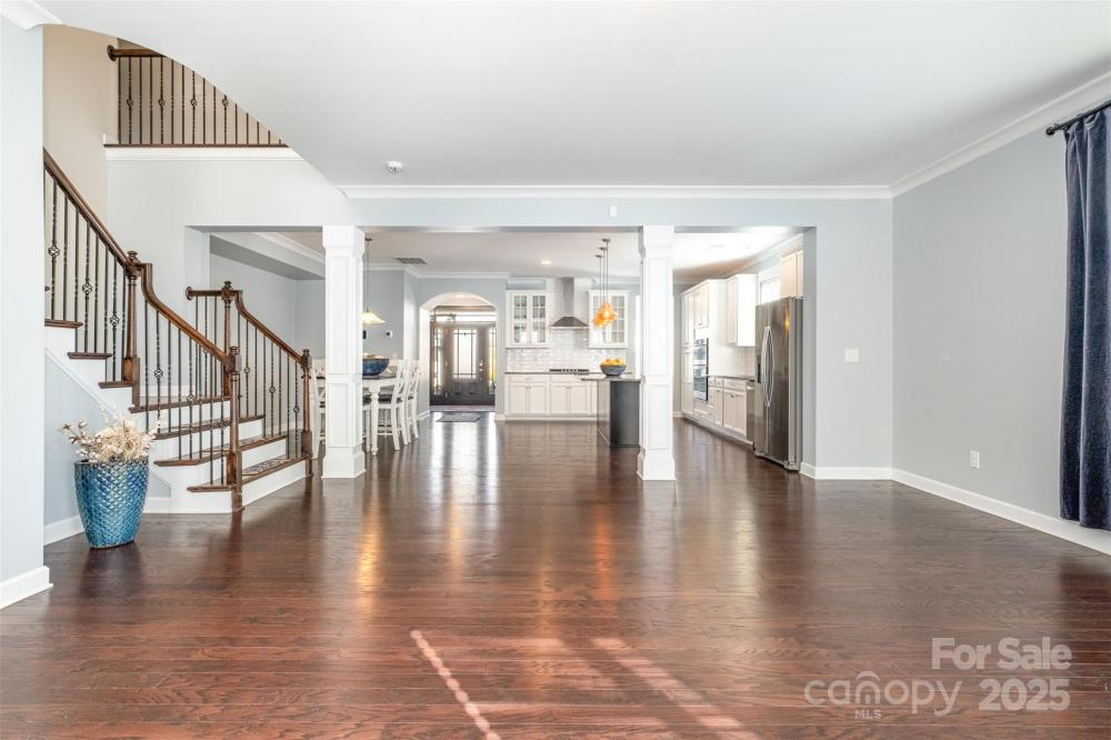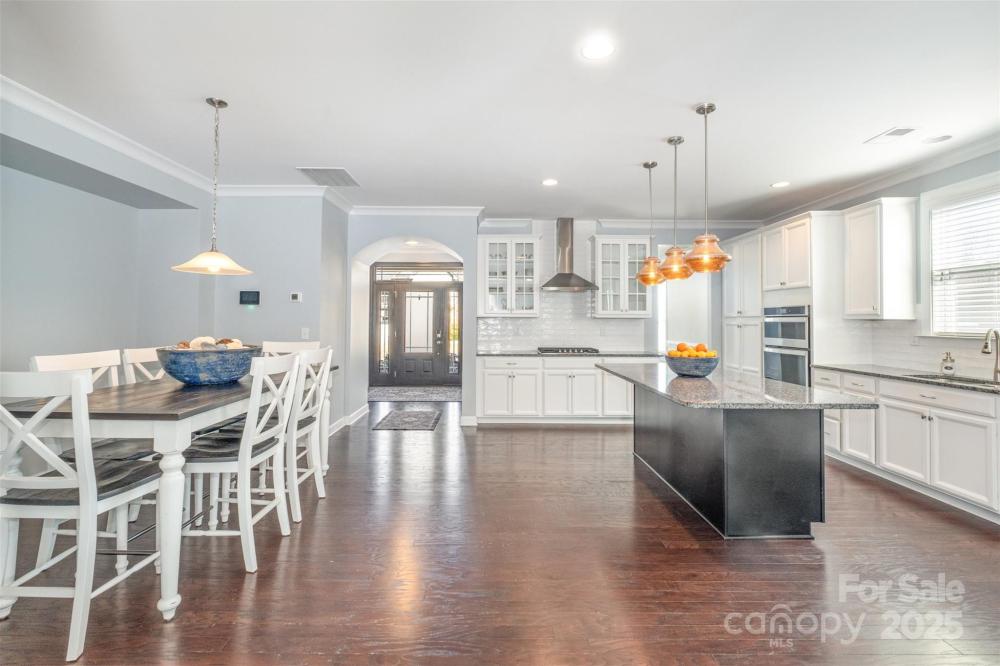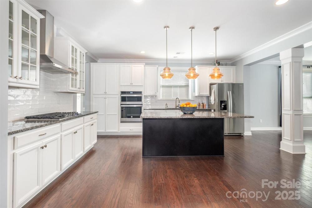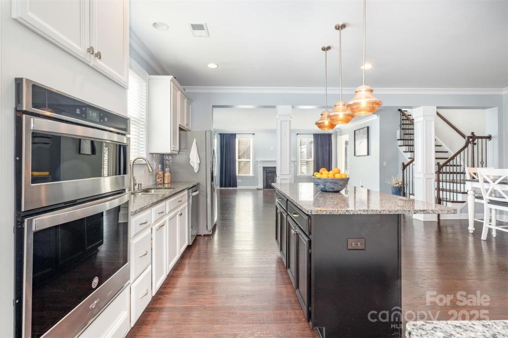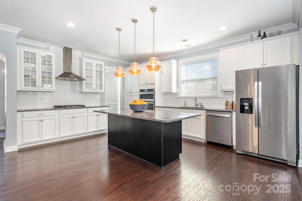 Step inside to discover open sightlines, 8-foot doors, and oversized windows that create a bright, inviting atmosphere throughout. The open hardwood staircase with wrought iron balusters adds a touch of architectural sophistication, while the Chef’s Deluxe Kitchen impresses with high-end finishes, premium appliances, and ample workspace for cooking and entertaining.