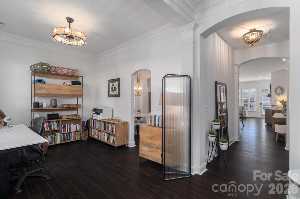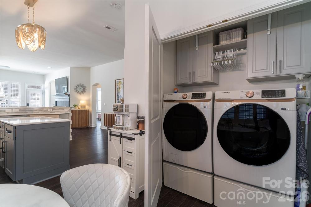 Fabulously updated ranch in Birkdale Village. Recent additions include custom closets, some plantation shutters, finishing the garage, some new switches and thermostat, and a fantastic Samsung Bespoke refrigerator and Samsung washer and dryer with pedestals. Low maintenance engineered wood flooring and tile throughout. Remodeled Chef's kitchen includes a prep island, eating bar, quartz countertops, cabinets, farmhouse sink, and other stainless appliances. Seller is currently using the dining room as an office. Primary suite includes an amazing custom closet, over sized shower with dual shower heads, a soaking tub and double vanity. Soaring 10 foot ceilings and arched openings. Secondary bathroom with newer tile, and furniture vanity. 2 car detached garage. Outdoors has a covered patio for entertaining and watching the sunsets. This home is a true "turn-key" ready home, as almost everything you can upgrade has been done.