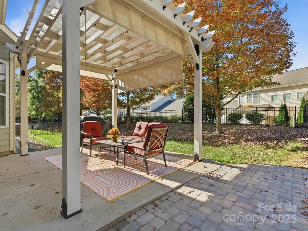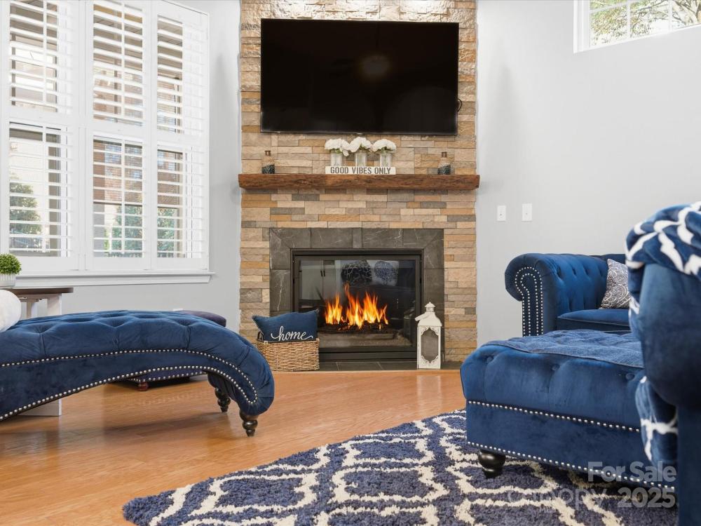 Loaded with premium upgrades and low-maintenance living, this beautifully maintained home in the desirable Cobblestone community is truly move-in ready. Inside, you’ll find hardwood floors, soaring 12'–15' ceilings, and a stunning gas fireplace with floor-to-ceiling stonework. The kitchen shines with a modern tiled backsplash and gorgeous quartz countertops, creating a bright, timeless look. The primary suite features a trey ceiling, custom barn door, and a custom closet system. Plantation shutters are included throughout the home for added style and convenience. Outdoor living is a highlight with a screened porch featuring epoxy floors, a custom pergola with roof and privacy screens, and a fenced backyard enhanced by a paver walkway and stone retaining walls. Additional upgrades include epoxy garage floors, gutter guards, a new water heater, and consistent HVAC and pest maintenance. HOA dues cover lawn care, offering hassle-free upkeep. The home is ideally located near shopping, dining, and highly rated Indian Land schools. Cobblestone offers excellent amenities, including an outdoor pool, clubhouse, and cabana—plus the benefit of low South Carolina taxes.