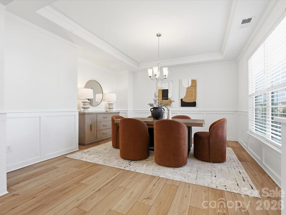 Exceptional, move-in-ready living awaits in this stunning 5-bedroom, 4-bath residence adorned with elegant stone accents, nestled in the highly sought-after Covington community—just minutes from Charlotte’s prestigious Ballantyne area, offering premier shopping, dining, and effortless highway access for an easy commute. A grand two-story foyer sets the tone, leading into a beautifully appointed main level featuring durable, designer LVP flooring and a sophisticated neutral palette throughout. The expansive formal dining room is ideal for hosting unforgettable gatherings. At the heart of the home, the gourmet kitchen impresses with crisp white cabinetry accented by antique gold hardware, wall ovens, gas cooktop with vented hood, oversized island with seating, sun-filled breakfast area, and a spacious walk-in pantry—perfect for both everyday living and elevated entertaining. The main level also offers a private guest bedroom with full bath, an inviting great room with a gas fireplace, and a convenient office nook. Step outside to unwind on the covered patio, creating a serene outdoor retreat ideal for morning coffee or evening relaxation. The upper level is highlighted by an expansive primary suite featuring a tray ceiling and a spa-inspired bath with a generous walk-in closet, dual-sink vanity, tiled shower, and a separate soaking tub. A conveniently located upstairs laundry room with a utility sink adds everyday ease. Three additional bedrooms and two full bathrooms complete the second level, offering ample space and comfort. Residents enjoy a community pool, clubhouse and playground.