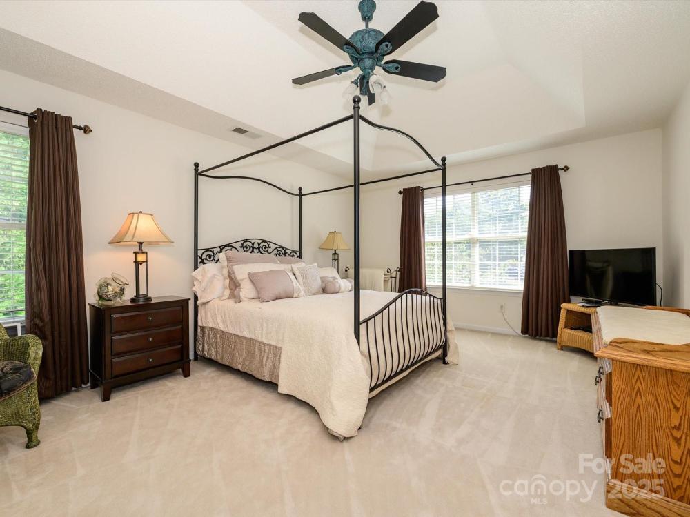 Wow! 2.7 acres of beautifully manicure heaven! And, did I mention the basement? It is unfinished but it has it's own HVAC, insulation, and is framed for the ease of finishing! One bedroom on the main floor with a ceiling fan and freshly cleaned carpet has access to a full bath. This would make a lovely office. Tile leads through to the kitchen and breakfast area. Formal living and dining rooms have gleaming hardwood floors, 2" faux wood blinds. Kitchen has a delightful view of the back yard, and features stainless steel appliances, and a spacious pantry. 2-sty great room with gas log fireplace, ceiling fan, access to the large deck out back. Upstairs you will find three additional bedrooms sharing a Jack and Hall bath and the laundry room. The primary suite has a tray ceiling with a ceiling fan, plenty of room for a seating area, and a private en suite bath with split vanities, water closet, and sep tub and shower. Yes, the rear of the property is in a flood plain however it is not near the house and in the 25 years the owner lived here she never had a claim or water over the small retainer wall in the back yard. This home is an absolute gem in this swim/tennis community.