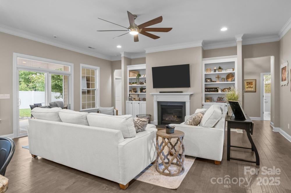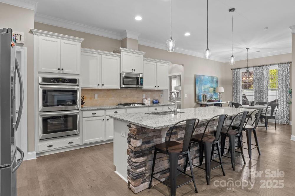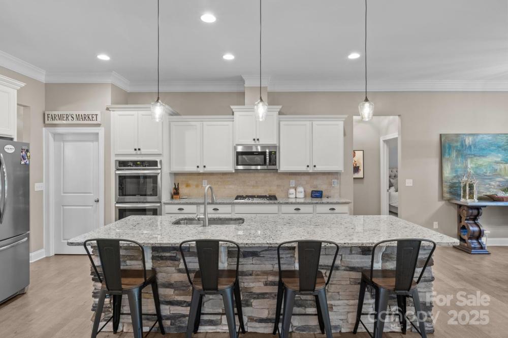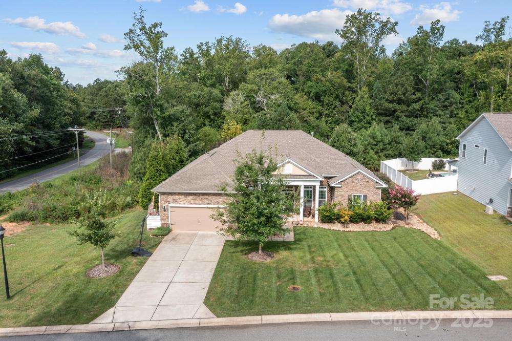 A ranch with over 2500 sqft! This beautifully appointed 4 bedroom, 3 bath home located in Covington of Lake Norman is sure to get your attention. The exterior is a classic brick with stone accent on a corner lot within walking distance of Lake Norman and just 2 miles from the Little Creek Boat access! Upgrades galore, with coffered ceilings in the dining room, french doors to the office, stone accent on the kitchen island and lovely built-ins that help set the upscale feel of this home. The split floor plan sets the luxurious primary bedroom suite with huge walk-in closet on one side and the other 3 bedrooms and 2 full bathroom on the other. The covered patio and fenced backyard give perfect setting to enjoy the outdoors. Community offers a community outdoor pool and playground. This neighborhood is in the highly sough after Rock Springs and North Lincoln school district.