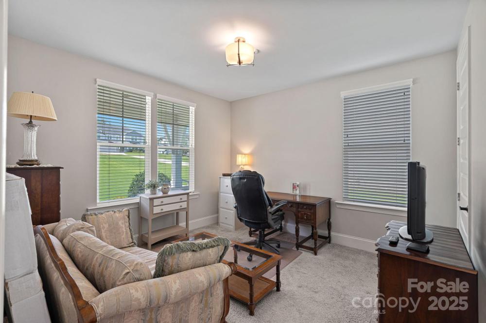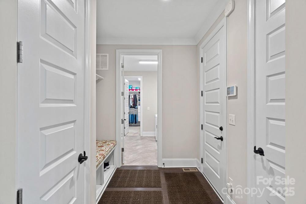 Significant Price Improvement! This better-than-new Mooresville home offers the perfect blend of luxury, privacy, and modern convenience in one of the area’s most desirable neighborhoods. Set on a private wooded lot, it showcases an open floor plan filled with natural light and high-end finishes throughout. The gourmet kitchen features an oversized island, gas cooktop, wall oven, and walk-in pantry, opening to a spacious great room with coffered ceiling and a wall of windows overlooking the serene backyard. The main-level primary suite includes dual vanities, an oversized walk-in shower, and a custom walk-in closet with direct access to the laundry and drop zone. A second bedroom on the main level provides flexibility for guests or a home office, while the screened porch offers a relaxing outdoor retreat surrounded by mature trees. Additional highlights include upgraded window treatments, established landscaping, and a three-car garage. Move-in ready and meticulously maintained, this home feels brand new without the added costs or wait of new construction. Conveniently located near Lake Norman, top-rated Mooresville schools, shopping, dining, and major commuter routes, this home delivers comfort, style, and value in one exceptional package.