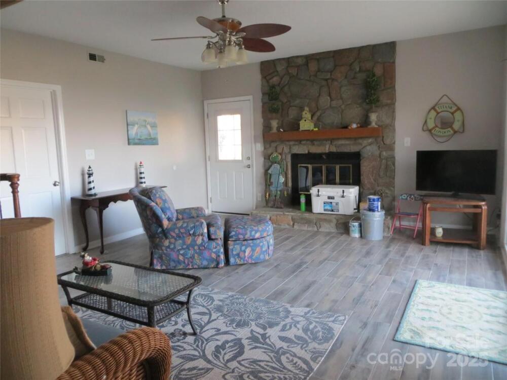 Remodeled waterfront home with huge yard and long range views. If you need bedrooms and baths this is it. The basement is mostly above ground and has a bedroom, bath, family room and 2nd fireplace. The main level Kitchen has granite c'tops, tile backsplash and sstl appliances. 4 of the 5 bedrooms have walk-in closets. The roof and hvac systems are just a few years old. County water and sewer systems and county taxes only. The house is fully furnished and may be able to be purchased this way. This is a great buy. Also note that this home would make a great vacation rental as there is no hoa and it's completely furnished.