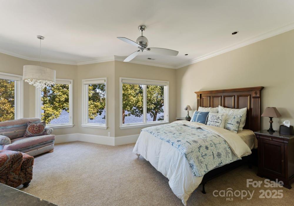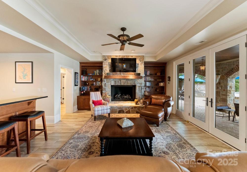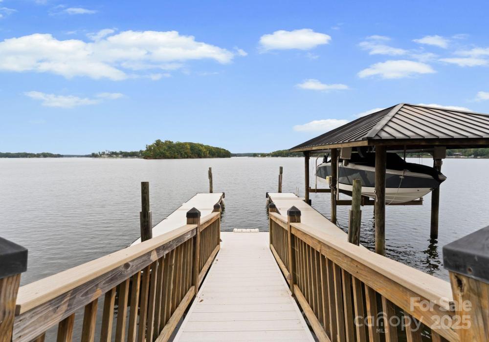 Welcome to serenity point, refined Lake Norman living at its finest—a place where every day feels like a quiet chapter in a well-lived story. Nestled on a private one-acre lot with over 300 feet of shoreline, this 6,411-square-foot estate welcomes you with panoramic main-channel views and timeless craftsmanship. Step inside to a soaring two-story stone fireplace, vaulted wood-accented ceilings in the dining room, and new hardwood floors. The main-level primary suite becomes your personal sanctuary, where mornings begin with sweeping lake views and evenings wind down beside the fireplace or in the spa-style bath. The heart of the home features a chef’s kitchen inspiring meals and memories. Sub-Zero refrigerator, Thermador double ovens, gas range, and generous counter space—all framed by water views that invite guests to stay awhile. Upstairs, family and guests can settle into three additional bedrooms, each with sweeping lake views, or gather in the theater room, complete with classic theater seating, a drop-down projector screen, an 84" Sony 4K LED TV, and a refreshment fridge for cozy movie nights. Entertain, enjoy, or unwind in the lake-level living with a game of pool, a workout in the gym, uncorking a bottle in the wine room, or opening the doors to let the lake breeze flow through. Experience tranquil resort-style living with your own private heated saltwater pool and spa, outdoor shower, and new 2025 patio deck overlooking the sparkling main channel. Fire up the outdoor kitchen for evening dining, then wander down to the private covered dock with boat lift, sound system, and kayak steps—ready for your Lake Norman adventures. Fenced yard, smart irrigation system, and Generac generator—every detail makes this a true dream home.