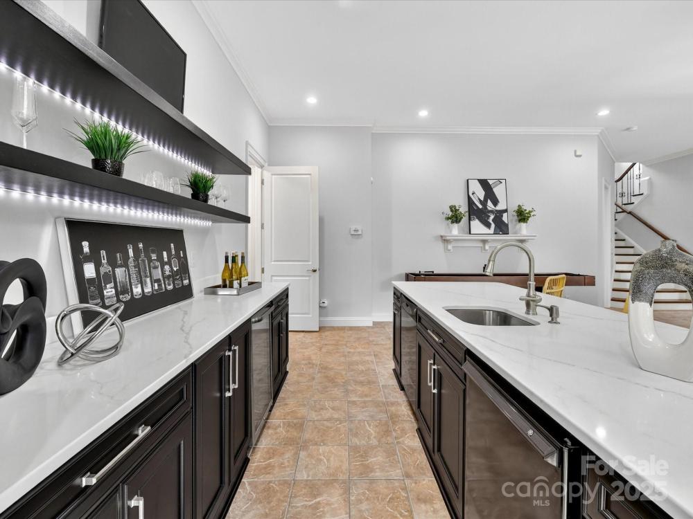 Welcome to 168 Brownstone Drive—an exquisite waterfront retreat in the heart of The Point, Mooresville’s premier lakefront community. Fully updated and meticulously maintained, this stunning ranch-style home with finished walk-out basement offers the ultimate blend of luxury, privacy, and access to the lake lifestyle—complete with a deeded boat slip just steps away. Inside, you’ll find a reimagined gourmet kitchen with top-of-the-line appliances, custom cabinetry, quartzite countertops and expansive island perfect for entertaining. Freshly refinished hardwood floors, updated bathrooms, fresh paint, and designer finishes elevate every inch of the interior. The main level features an elegant primary suite with spa-like bath and generous walk-in closet, plus two additional bedrooms with en-suite access. The lower level is a true showstopper—ideal for multigenerational living or entertaining—with a sleek second kitchen/bar, high ceilings, a spacious rec room, private guest suite, two offices, and workshop space. It flows seamlessly out to a new travertine terrace with outdoor fireplace, built-in grilling station, and views of the peaceful cove. Enjoy evening strolls along your private boardwalk leading to the water, or imagine relaxing poolside with the included pool rendering offering a vision for your dream backyard oasis. Tucked on a lush, tree-lined lot, this home offers both serenity and proximity to The Point’s world-class amenities—golf, tennis, dining, and more (with separate TNG membership). Whether you’re seeking a full-time residence or lakefront retreat, this updated gem offers the space, style, and setting to live your best Lake Norman lifestyle.