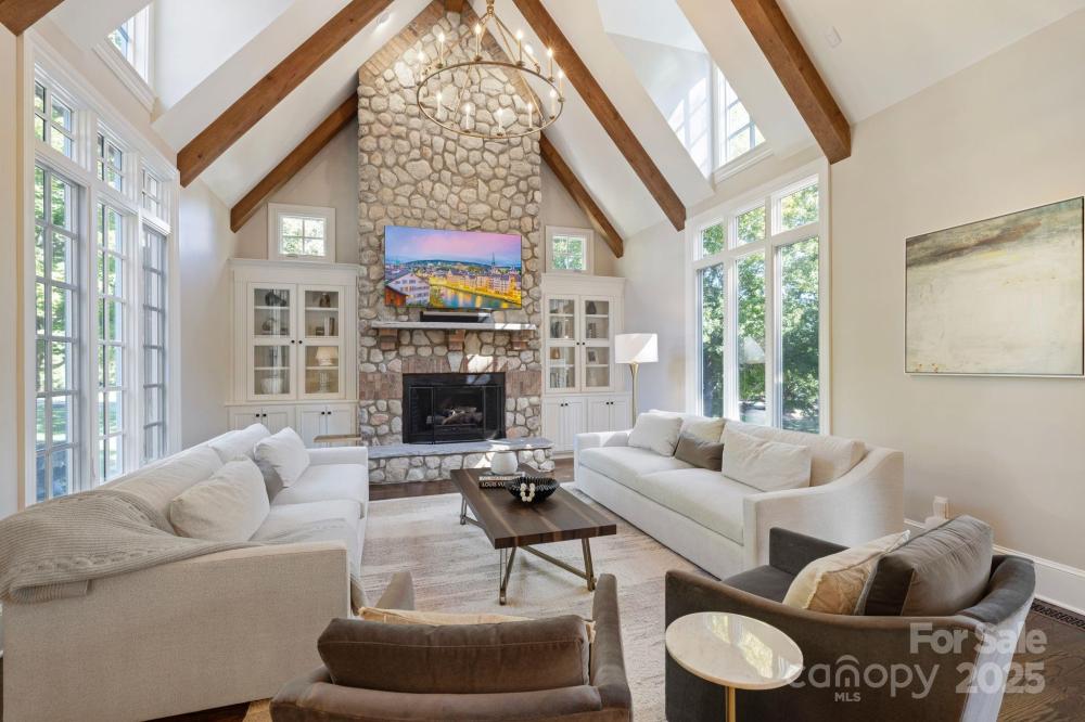Experience designer luxury in this stunning waterfront retreat on one of the most coveted streets in The Point — welcome to 190 Cape Cod Way. Completely renovated and move-in ready, this 6,300+ sq ft home blends timeless elegance with modern comfort. Every inch reflects exceptional craftsmanship and thoughtful design, showcasing exquisite high-end finishes throughout. The open-concept kitchen flows seamlessly into a cozy family room and a soaring two-story great room—perfect for both entertaining and everyday living. Five spacious bedrooms and 4.5 spa-inspired baths are spread across three beautifully finished levels. A comprehensive renovation includes a new roof (2023), new HVAC systems, tankless water heater, and full remodels of the kitchen and all bathrooms, along with refreshed landscaping, lighting, and a newly resurfaced pool featuring new plaster, stone, and tile. Step outside to your resort-style backyard overlooking Lake Norman complete with a sparkling pool, outdoor grill, sandy beach and covered patios ideal for relaxing and hosting. The walk-out lake level offers a private guest suite, gym, large family room, full kitchen, and theater room. Take a short walk on your backyard boardwalk directly to your boat with a new lift to experience lake living at its finest!