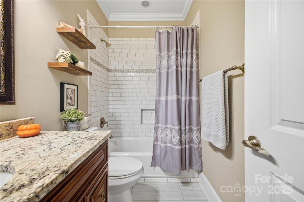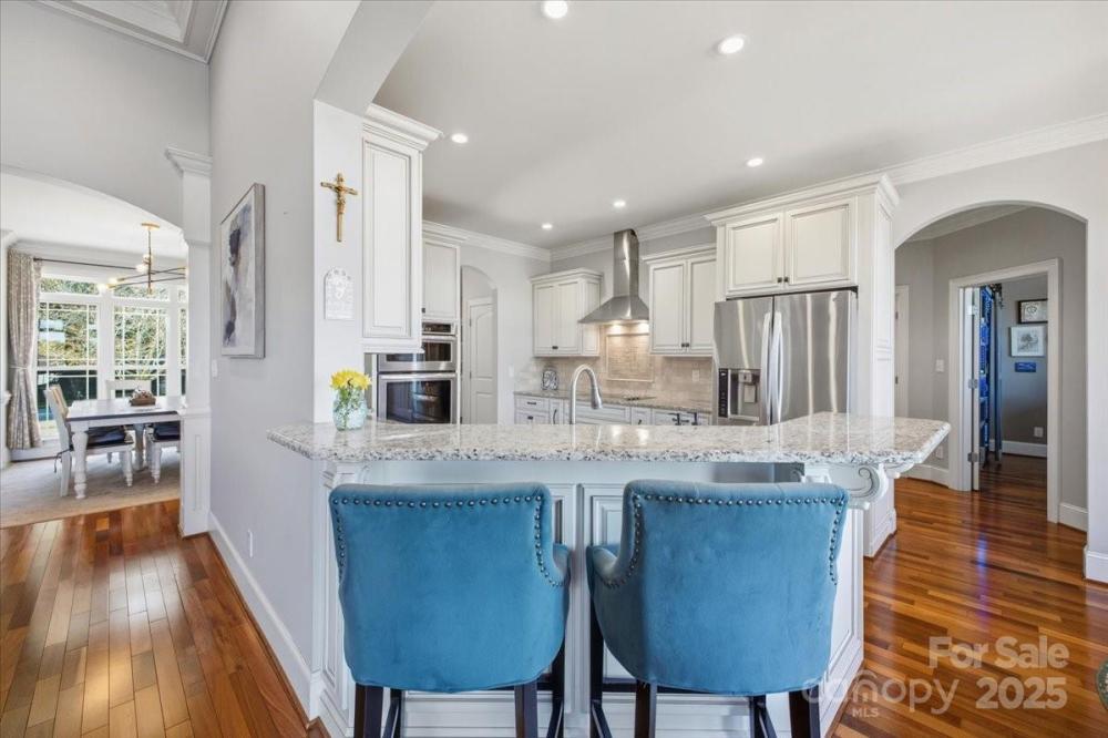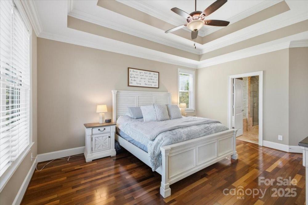 Welcome to 7511 Pine Glade Drive, a sophisticated and contemporary haven located in the peaceful community of Denver, NC near the scenic Lake Norman. This remarkable home offers a well-designed living space with five generously sized bedrooms and three and a half luxurious bathrooms, ensuring both comfort and privacy for everyone. The residence beautifully marries modern sophistication with timeless elegance, featuring custom moldings and design elements throughout, including coffered ceilings and bespoke lighting. The main level boasts three full bedrooms including the primary suite and three baths, all complemented by elegant hardwood floors throughout, adding warmth and style to the living space. The living room is anchored by a custom gas fireplace adorned with a cedar mantel, creating a warm and inviting focal point. The kitchen is a culinary enthusiast's dream, adorned with custom soft-close cabinetry, a high-end KitchenAid gas stove, and convenient pull drawers, enhancing both style and functionality. The open-concept layout effortlessly connects the living, dining, and kitchen areas, fostering a welcoming environment perfect for both entertaining and daily life. For added convenience, the home includes a walk-in pantry and walk-in laundry areas. Additionally, the garage's tall ceiling, along with two walk-in attic spaces and a walk-in crawlspace, provide ample storage options. The home's HVAC system was newly replaced in 2024, ensuring efficient and reliable climate control throughout the seasons. Situated just moments away from essential amenities, this home offers easy access to grocery stores, the Westport Tennis and Swim Club, Westport Golf Club, and the Burton Rd Boat Launch, ensuring a seamless connection to the breathtaking landscapes and recreational activities of Lake Norman. Discover the ideal balance of serenity and accessibility in this stunning Denver home. Don't miss the chance to make this exceptional property your personal retreat.