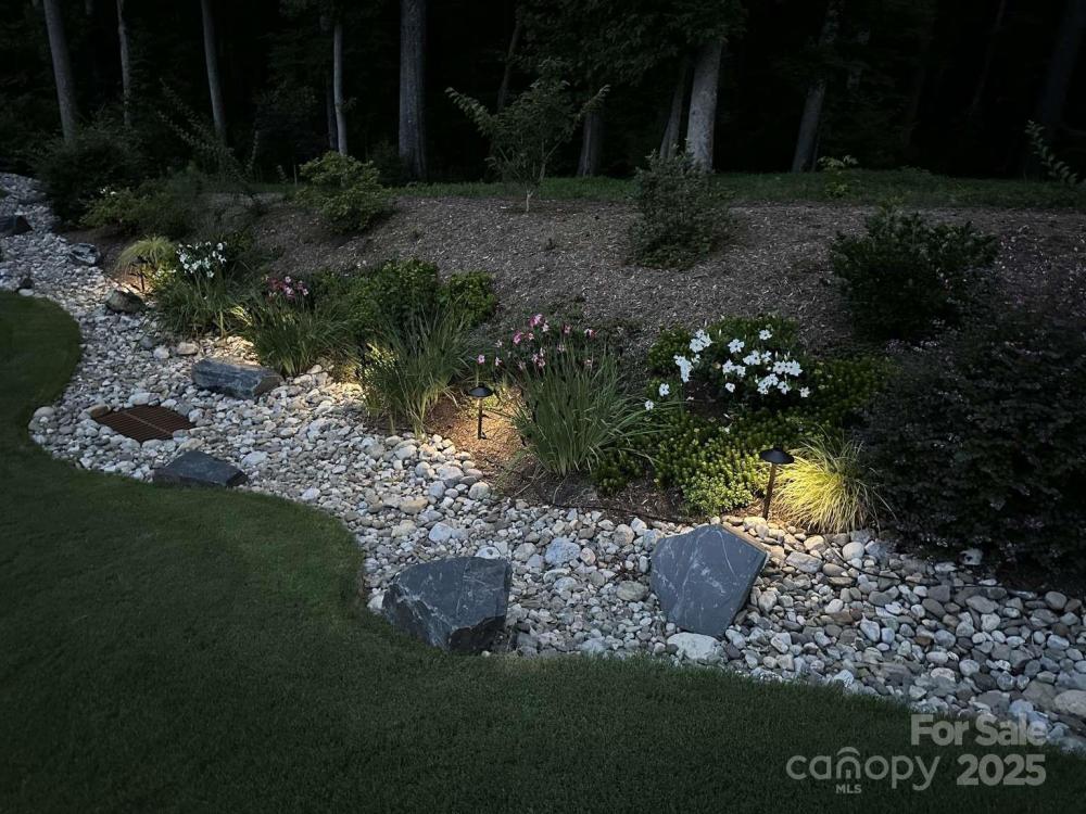 This stunning five-year-old home sits on a spacious, private wooded lot and perfectly blends modern design with timeless elegance. Step inside to a dramatic two-story foyer with rich wood flooring throughout the main living areas. The formal dining room stands out with its tray ceiling and classic wainscoting. Natural light floods the open floor plan, creating a warm and welcoming ambiance. The chef’s kitchen boasts a sprawling island, elegant granite countertops, a herringbone-patterned backsplash, gas cooktop, double wall oven/microwave, walk-in pantry, and a bright breakfast nook just steps away. Upstairs, retreat to a luxurious master suite accompanied by two additional bedrooms, a dedicated office, a large laundry room, and a versatile loft. Outdoor living is truly exceptional with an oversized custom patio, stacked stone built-in kitchen, and a cozy gas fireplace—perfect for entertaining or relaxing. The landscaping is beautifully maintained and features an irrigation system.