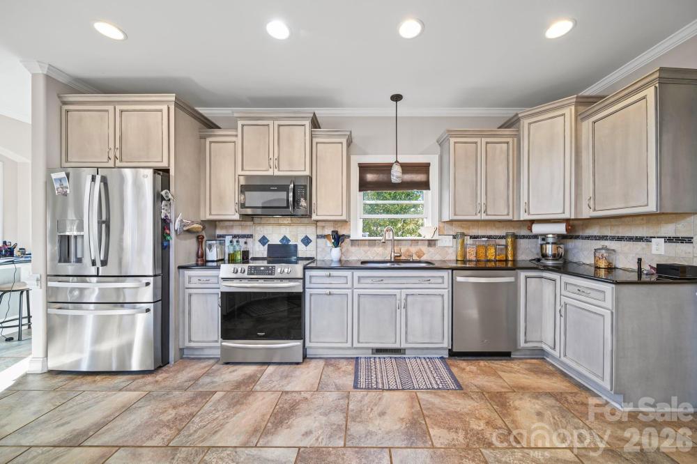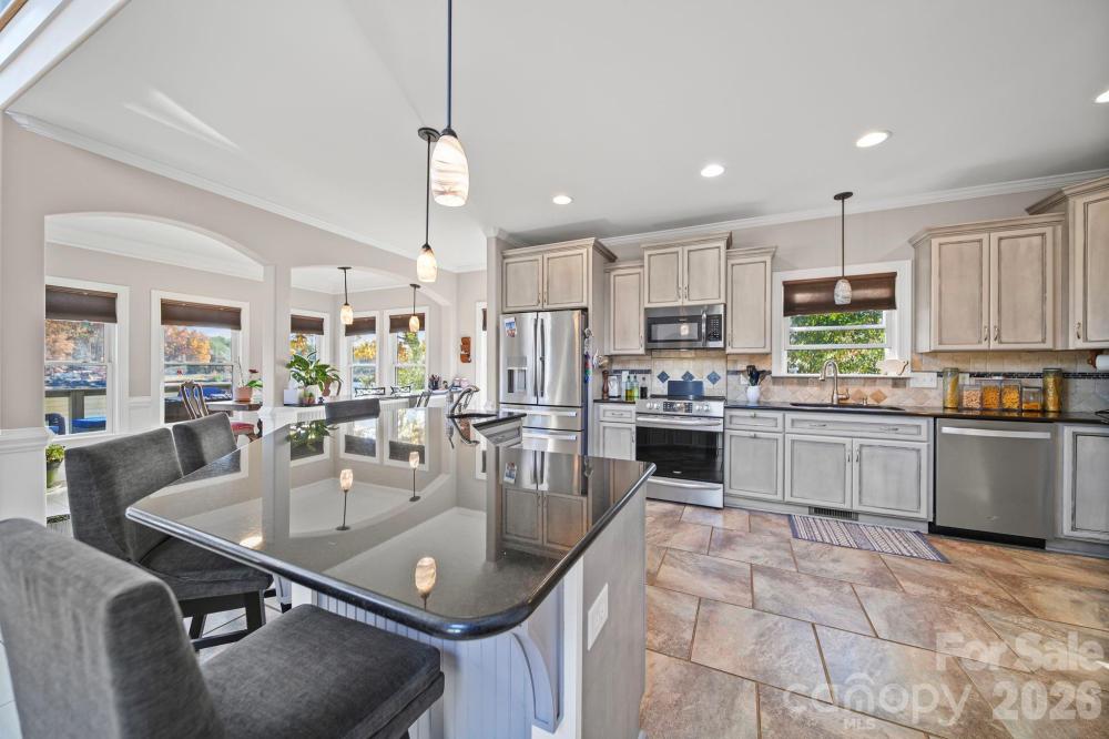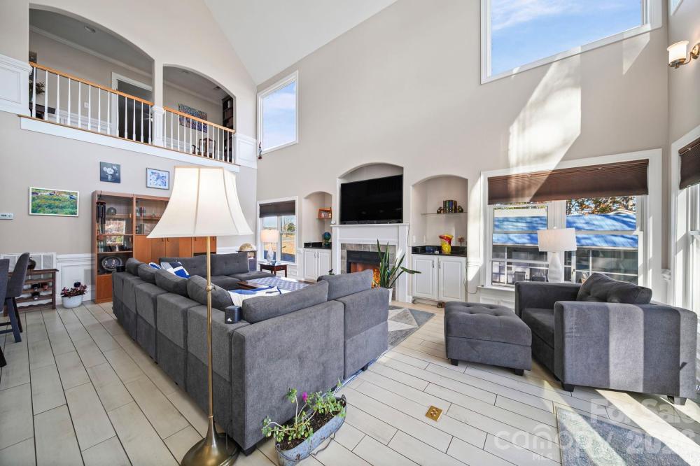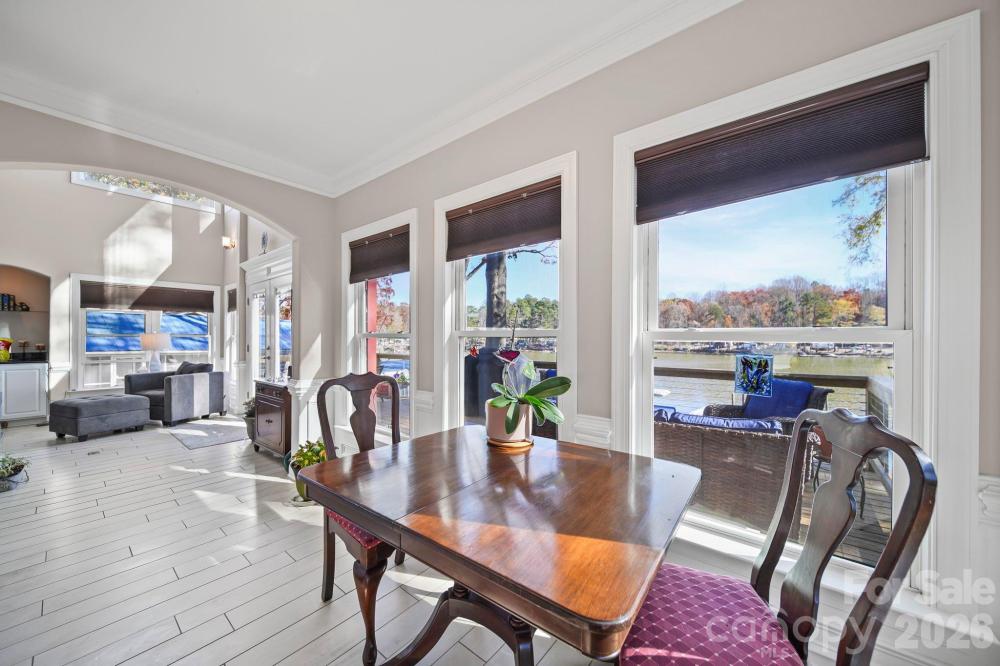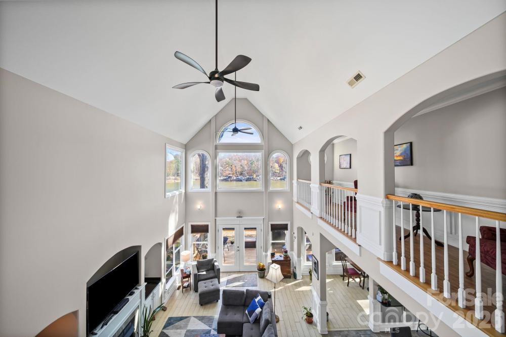 Experience lakefront living at its finest on High Rock Lake in this custom-built three-story waterfront home. Step inside to a dramatic two-story great room featuring a stunning gas log fireplace, built-in cabinetry, and elegant architectural details throughout. Arched balconies and upscale moldings add charm and character, while the beautifully appointed kitchen offers ample seating—perfect for hosting large gatherings. From the main level, step out onto the spacious balcony (2025) and take in breathtaking lake views. The main-level primary suite provides comfort and convenience with a private ensuite bath and a generous walk-in closet. A separate full bath on the main level accommodates guests. Upstairs, you’ll find a spacious bedroom with a walk-in closet, along with an office, sitting room, and an additional full bath—offering flexible living space to suit your needs. The finished basement level expands your options even further, currently arranged as an additional bedroom, exercise room, second office, and a recreational room complete with a wet bar. Two separate walkouts lead to a patio area featuring a jacuzzi tub (2024), creating the perfect space to relax and unwind. Step down to the dock and pier (replaced in 2021) and take advantage of the pontoon lift for easy lake access. All appliances have been recently replaced and will convey with the home. Fisherman’s Cove HOA dues include the community well, maintenance of all common areas, and access to two separate gated boat ramps, a gated sandy beach area as well as a covered shelter with picnic tables and restroom facilities. This exceptional lakefront property offers space, style, and stunning views—don’t miss your opportunity to make it yours!