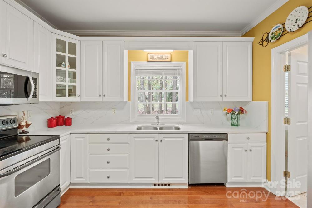 Location, location, location! This beautifully updated home is tucked away in the highly sought-after Fox Chase development on a desirable level cul-de-sac lot. Designed for flexibility, the floor plan offers 3 bedrooms on the main level, along with a flex room, full bath, bonus room, and walk-in attic—ideal for guests, hobbies, or a private retreat upstairs. Countless upgrades include a 2021 roof, gutter guards, re-landscaped yard, inground sprinklers, and brand-new carpet in both main-level bedrooms. The kitchen is a showstopper with new quartz countertops and backsplash, stainless steel appliances, a seated bar, and a walk-in pantry. The main-level laundry features a sink for added convenience. Enjoy gas heat on the main (new in 2021), gas water heater, and gas logs in the great room. Much of the home has been freshly painted, and the stunning coffered ceiling in the foyer opens to the formal dining room, great room, and kitchen, creating a bright, open layout perfect for entertaining or everyday living. Additional highlights include a spacious garage with a side access door, large covered back patio with glass doors, washer, dryer, and refrigerator included, no HOA fees, and City of Hickory water with septic tank. Move-in ready and beautifully maintained—just unpack! This property is within 1/2 mile of a voluntary agriculture district.