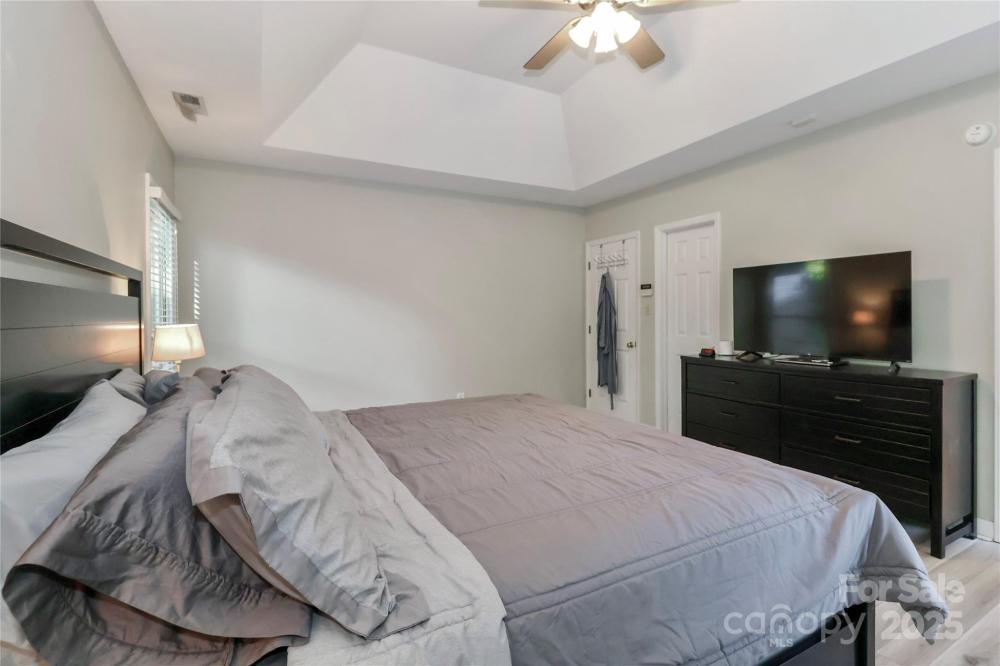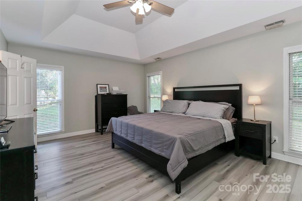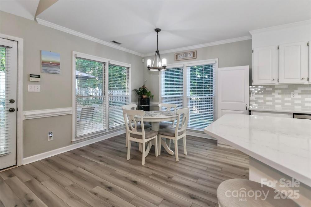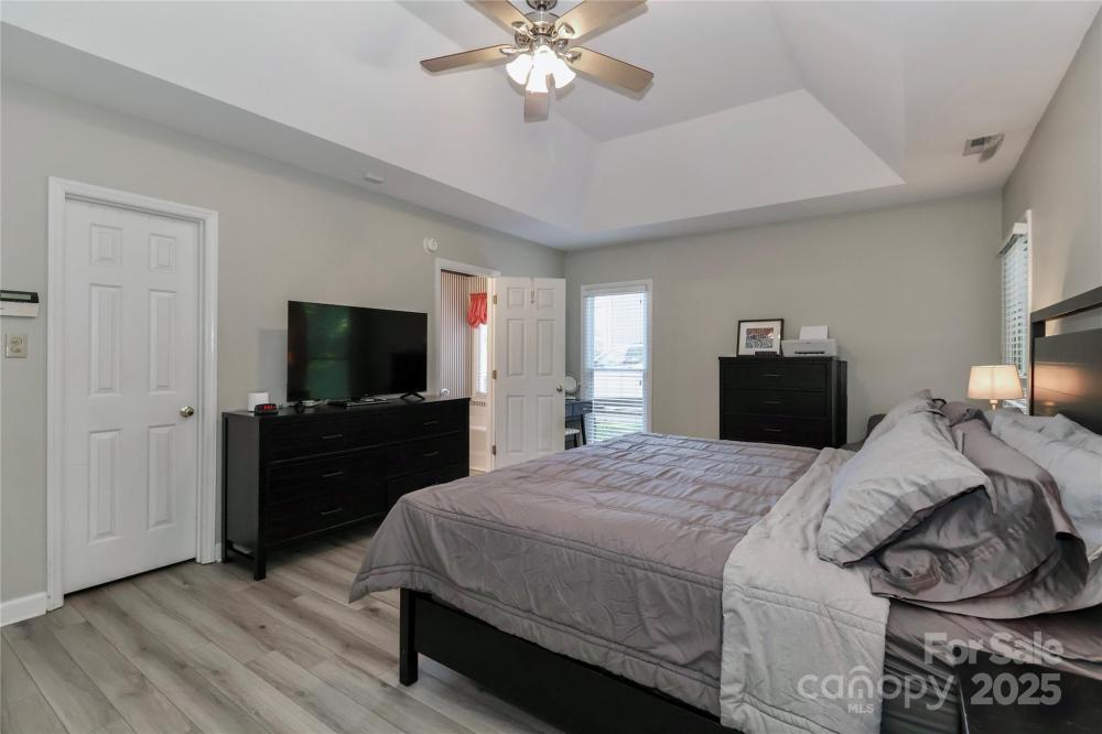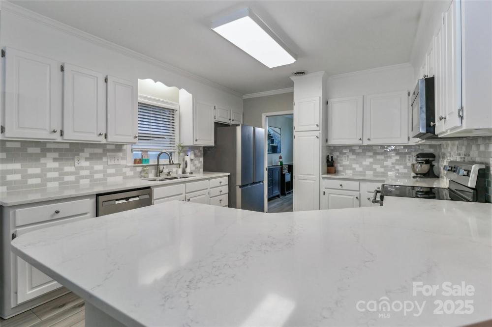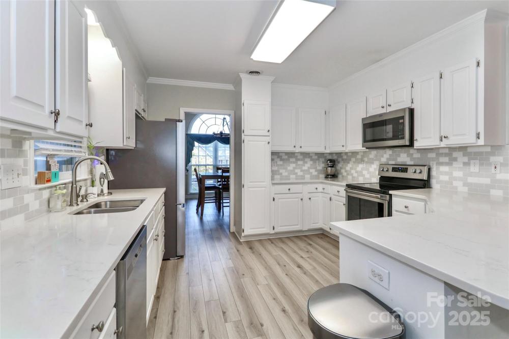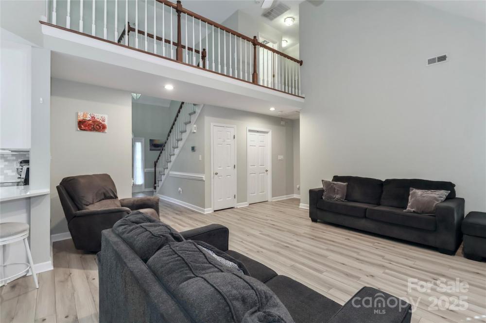 Highly sought after Franklin Grove home featuring four bedrooms, primary bedroom on main level! Second story balcony overlooks great room with beautiful fireplace. Kitchen updated with gleaming quartz, subway tile backsplash, fresh paint, new flooring, this home has it all. Walking trail to Bellingham Park which offers youth soccer, baseball, softball and playgrounds, pavilion, exercise trail. side entry garage. All in the award winning Mooresville Graded Schools