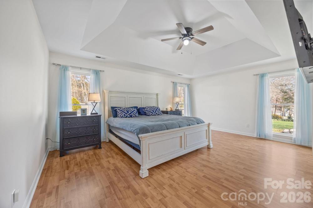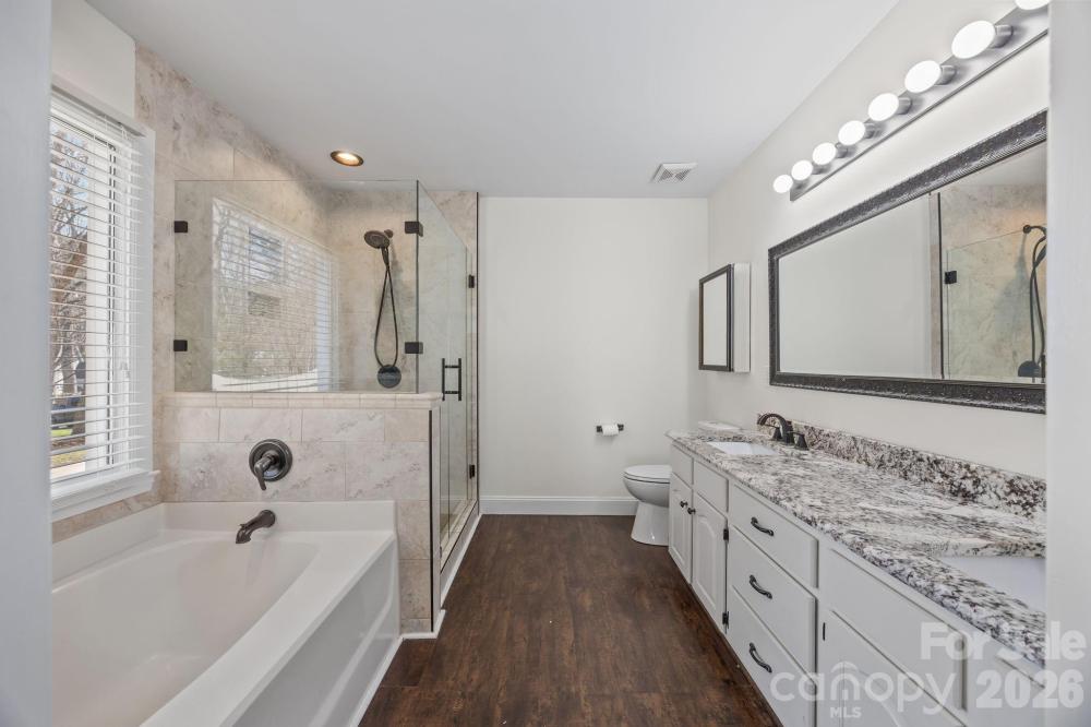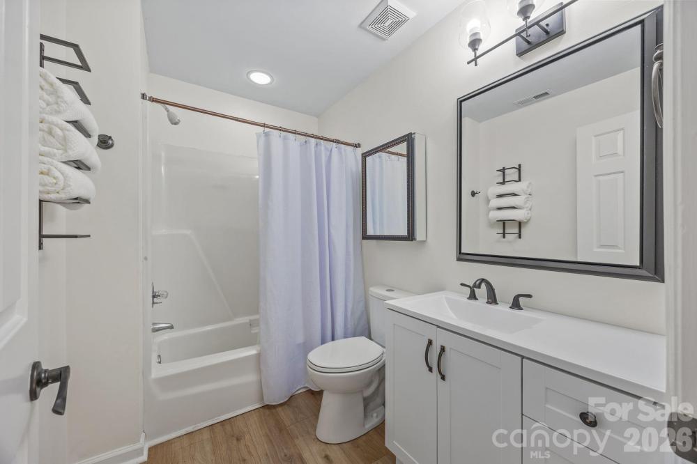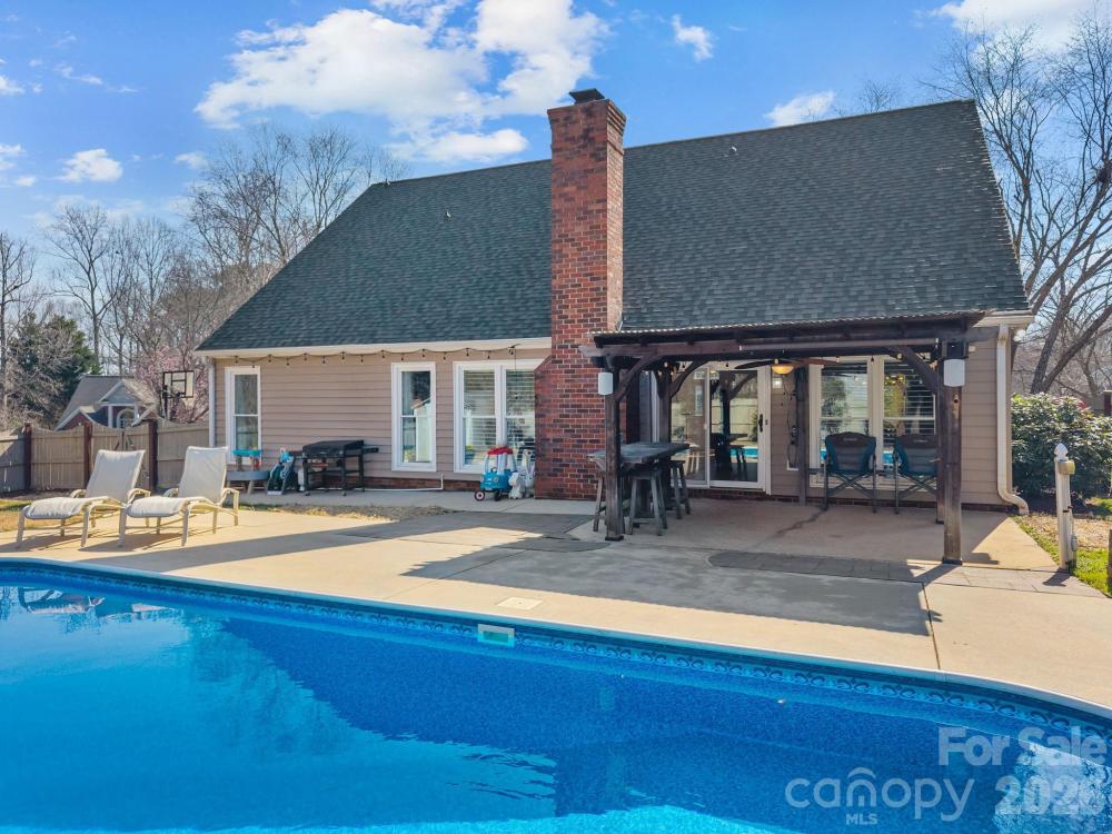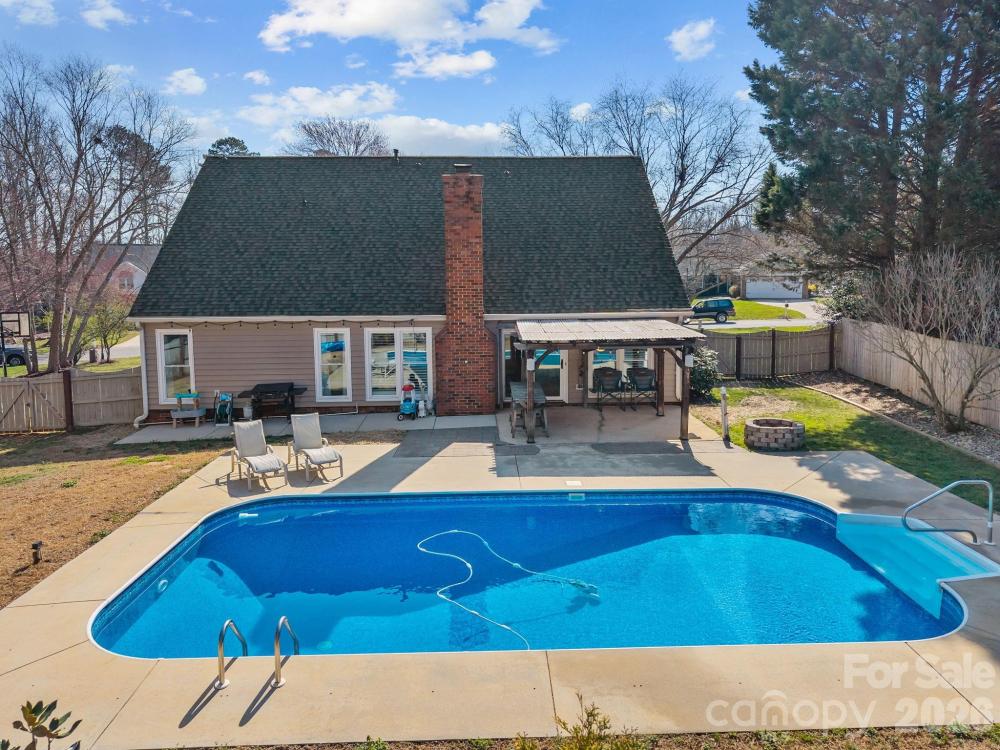 Updated, turn-key home in the desirable Franklin Grove community offering significant recent capital investments. The standout feature of this property is the private backyard built for entertaining, centered around an in-ground pool. Modernized in 2020 with a new liner and updated equipment, the pool area is enhanced by a pergola and freshly refreshed landscaping, providing a high-value outdoor living space that is ready for day one. Inside, the property feels fresh. The entire interior and the two-car garage have been freshly painted in a modern, neutral palette for 2026. The main level features a highly functional layout, including a primary bedroom suite and a spacious great room anchored by a classic wood-burning fireplace. The kitchen is equipped with granite countertops, newly refinished modern cabinetry (2026), and updated appliances including a new microwave and dishwasher (2025). Also on the main floor is a fully remodeled laundry room (2026) complete with new cabinets, LVP flooring, and upgraded lighting. A newly refinished staircase (2025) leads to the second level, which has been completely upgraded with premium LVP flooring (2025). Upstairs includes two additional bedrooms, a large bonus room/4th bedroom situated perfectly over the garage, and two fully renovated bathrooms (2025) featuring new vanities, fixtures, and modern finishes. Buyers can purchase with absolute confidence knowing the heavy lifting has been done. Recent major system upgrades include a new 30-year architectural roof (2025), a new water heater (2025), a complete HVAC system replacement (2021), and full whole-home window replacements (2021). Located in a quiet neighborhood featuring walking trails and a tranquil pond, this home is just minutes from Bellingham Park, shopping, dining, and I-77, and is zoned for award-winning Mooresville City Schools.