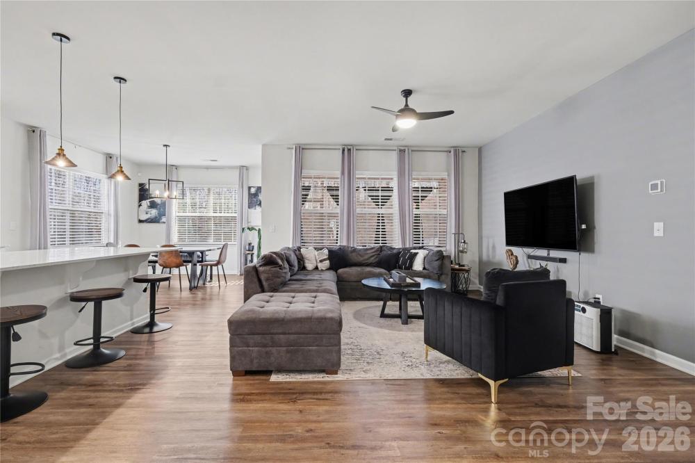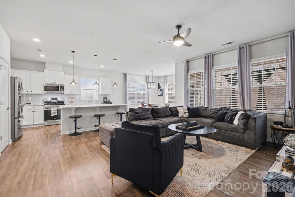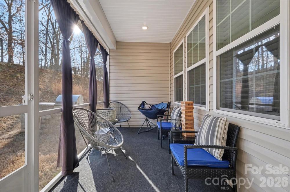 Welcome to this meticulously maintained, like-new home in the Gambill Forest neighborhood! Perfectly positioned on a quiet cul-de-sac lot, this beautiful three-bedroom, two-bath ranch offers comfort, style, and effortless living all on one level. Step inside to an inviting open floor plan designed for both everyday living and entertaining. The spacious kitchen is truly the heart of the home, featuring elegant quartz countertops, a large center island that overlooks the living room, and a convenient pantry for added storage. Whether hosting friends or enjoying a quiet evening in, this space feels bright, connected, and welcoming. The private primary suite offers a peaceful retreat with a beautifully tiled walk-in shower and a generous walk-in closet. Two additional bedrooms are thoughtfully positioned and share a full bath, making the layout ideal for guests, family, or a home office. Enjoy the outdoors year-round on the screened back porch, complete with a stone grill area perfect for barbecuing and entertaining. Gambill Forest residents enjoy community amenities including a neighborhood pool, gym, clubhouse, and scenic walking trails — offering a lifestyle as appealing as the home itself.