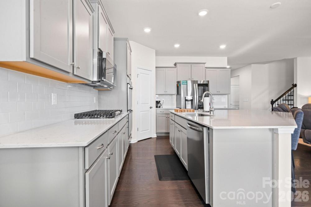 Welcome to this beautiful 3 bedroom, 3 bath open concept smart home just minutes from downtown Mooresville! The primary suite is conveniently located on the main level, along with a dedicated office- perfect for working from home or extra flex space. The kitchen features quartz countertops, stainless steel appliances, and flows seamlessly into the main living area, all highlighted by durable LVP flooring. Upstairs, enjoy a spacious loft, an additional bedroom and a full bath—ideal for guests or a second living space. Located in the Mooresville Graded School District, this home sits in a fantastic neighborhood offering walking trails, a community pool, fitness center and clubhouse. Close to shopping, dining and local favorites. This home truly has it all! Smart home includes: myQ garage system, Flo smart monitor & shutoff by Moen, and a Ring camera system with access pad. This home also comes with a whole house Taexx system: a built in home pest control network serviced by HomeTeam Pest Defense.