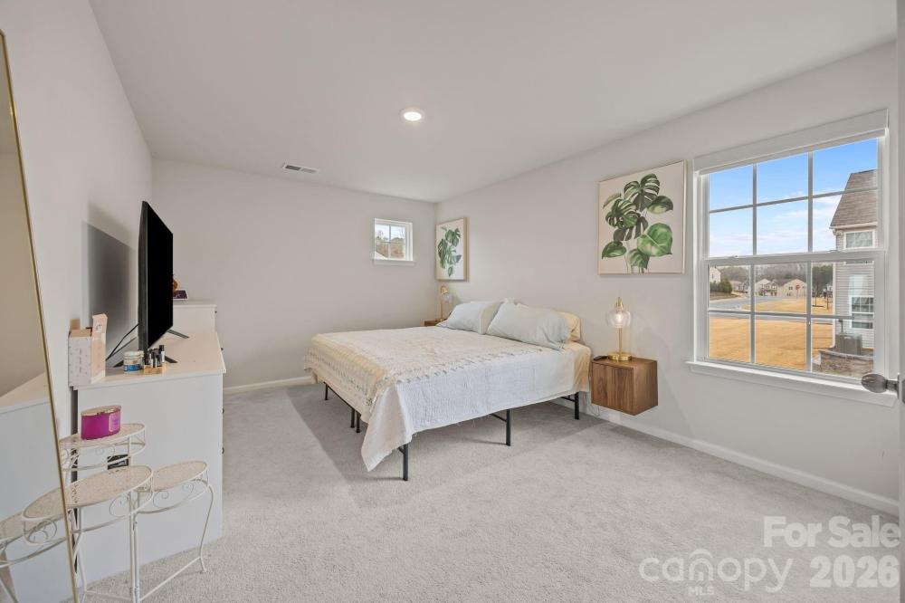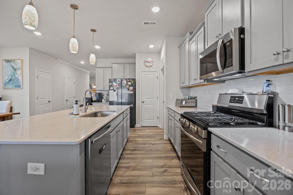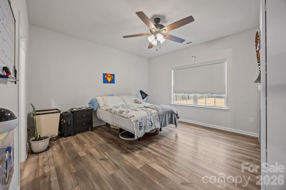 Welcome to sought-after Gambill Forest! This beautiful 4-bedroom, 2.5-bath home includes energy efficient and additional smart home features, sits on a generous lot with a fully fenced backyard just east of downtown Mooresville. Designed with both comfort and functionality in mind, the home features a bright, open floor plan with abundant natural light and seamless flow for everyday living and entertaining. The primary suite on the main floor offers peaceful backyard views, large windows, and a spacious ensuite with double vanity. A first-floor laundry room adds everyday convenience. Upstairs, you'll find three additional bedrooms plus a versatile loft space—perfect for a home office, media room or second living area. This north-facing home offers sunrise views from the back door, creating the perfect spot to enjoy your morning coffee. Located in a newly established neighborhood, Gambill Forest provides a modern, well-maintained community feel where neighbors truly look out for one another. Residents enjoy access to two pools, a lap pool and kiddy pool- side by side, a clubhouse, and a fitness center, along with the unique charm of horses grazing just behind part of the neighborhood. Conveniently located near many local favorites, minutes from the shops, restaurants, and events of downtown Mooresville—known as the heart of Race City USA. This home offers the perfect blend of modern living, community charm, and convenience.