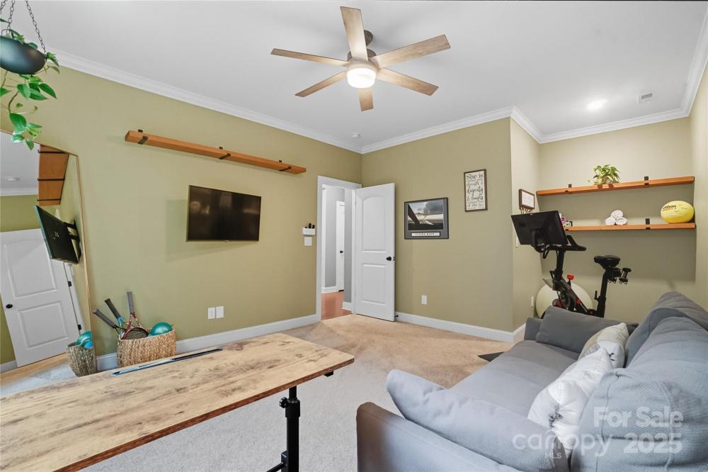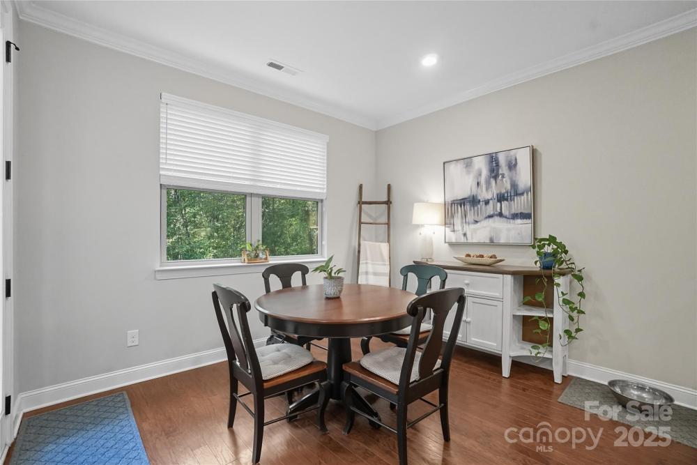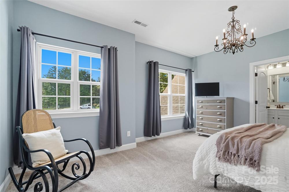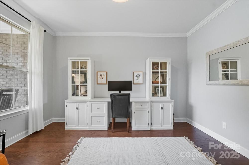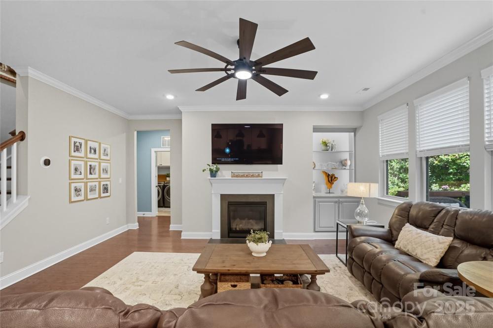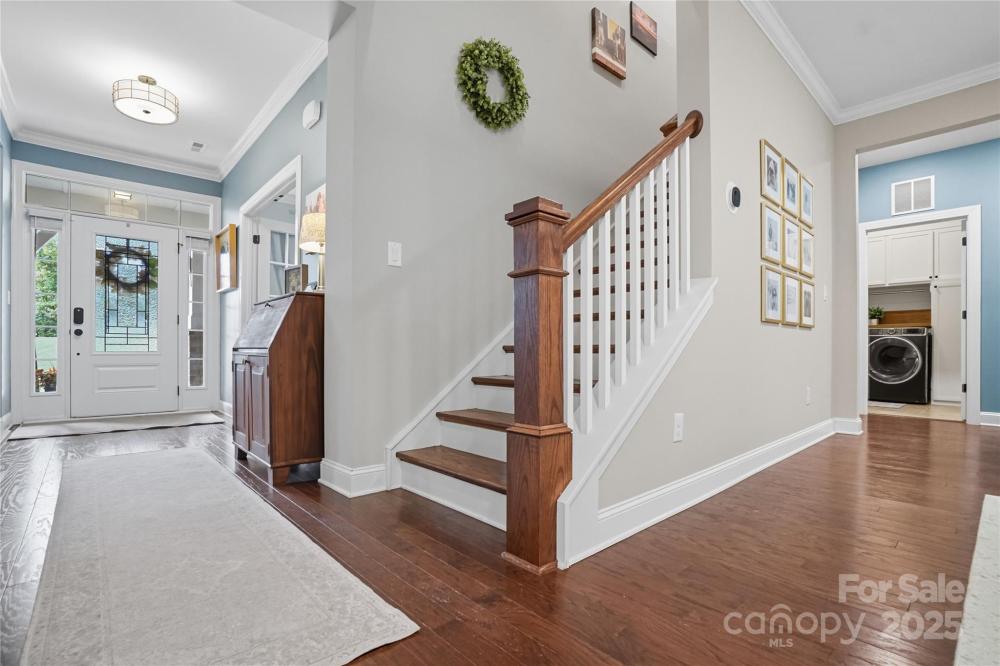 Discover the perfect blend of privacy and convenience in this Mooresville gem, set on just over an acre in a peaceful country setting, yet only minutes from Lake Norman, shopping, and dining. Tucked away on a quiet cul-de-sac, this 4-bedroom home offers inviting curb appeal with a rocking chair front porch and an expanded driveway for additional parking. The main level features a spacious office framed with French doors, an inviting family room with a gas fireplace and built in shelving, and versatile flex space ideal as a playroom, second office, or exercise room. The chef’s kitchen is a standout, featuring a gas range, oversized quartz island, and a spacious walk-in pantry.