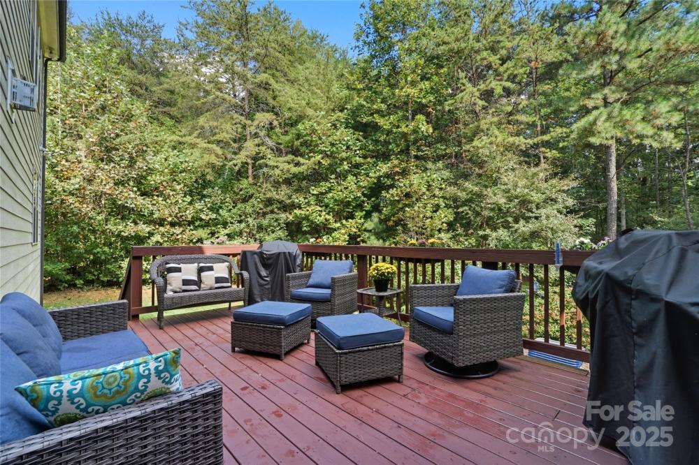 The backyard is a true retreat! Enjoy your morning coffee on the back deck overlooking your acre of peace and quiet. End your evenings by the firepit underneath a a canopy of oak and maple trees glittering with string lights. Love to explore?! There's an adorable walking path through the woods with a SECOND FIRE PIT! This property combines everyday comfort with thoughtful details, creating a home you’ll love both inside and out.