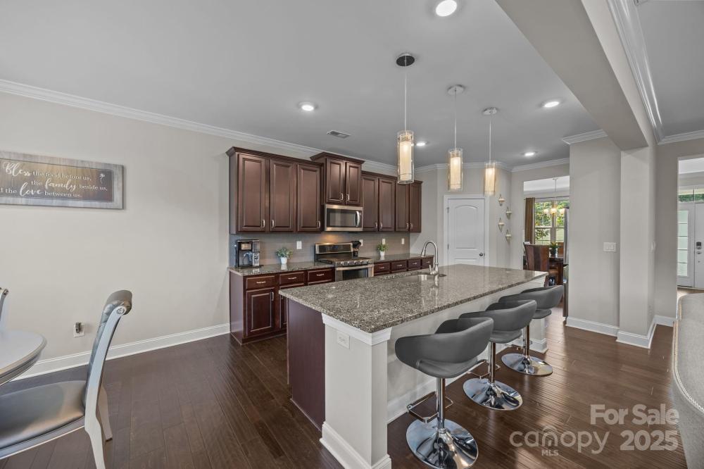 Welcome home to this Retreat! Rare opportunity to own a 5 bedroom home with a complete permitted finished basement with a full bath with a zero entry shower, office, recreation room with wet bar area, custom wine closet with newly installed racks (not pictured), great room for family movie night and an oversize gym room area that can house a lot of equipment. This home has a beautiful covered front porch with room to sit. Entering the main level you have your office with french doors to the left and large dining room to the right leading to the large oversized kitchen that is open to the great room with added custom shelving and fireplace surround. This level also has a really nice oversized laundry room, drop zone, full bath and main floor guest fifth bedroom. The second floor has an oversized primary bedroom with a sitting area, massive closet and beautiful bath, two additional bedrooms joined by a jack and jill bath and fourth bedroom with its own private bath. This home has so much versatility for the growing or multi generational families. This home overlooks a large tree-lined rear yard. The 5 bedroom septic system is in the front leaving plenty of room for a future pool in the back. Since owning this home they have continuously made improvements over the years by extending the rear deck and patio with hookups for a hot tub, finishing the basement, added the upgraded lighting and fixtures, closed in the open area in the primary bedroom to make a nice private sitting area, upgraded the surround around the fireplace and added custom bookshelves plus a Culligan soft water system. Hollybrook is a well established one plus acre 44 completed home community. This neighborhood is in the county, not in the city of Mooresville, but only 10 minutes from downtown and the excitement it has to offer, 5 minutes to the new Publix, 20 minutes to Mooresville Consumers Square and Lake Norman, 40 minutes to the airport or uptown Charlotte, Why wait for new construction when you can be in your new home in 30 to 45 days.