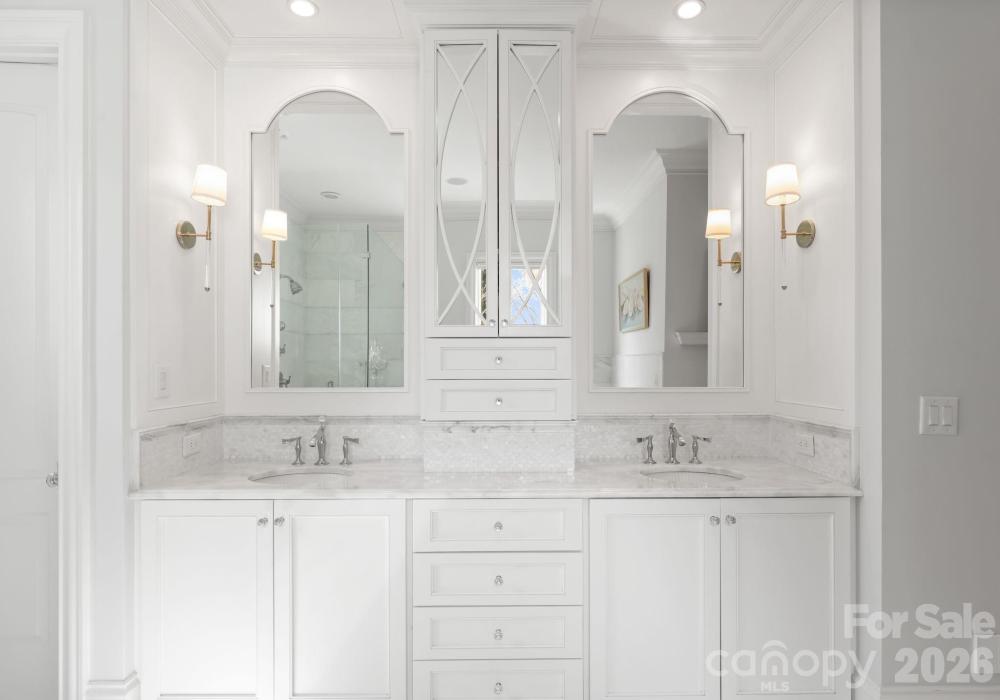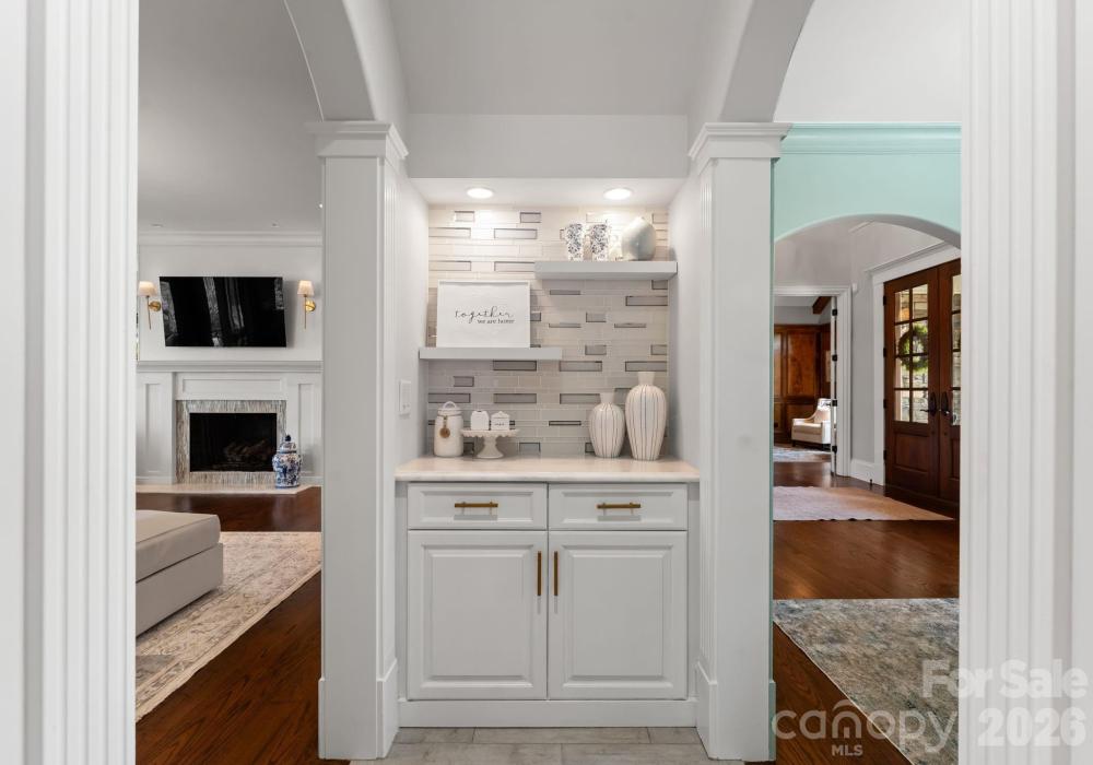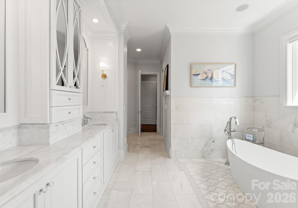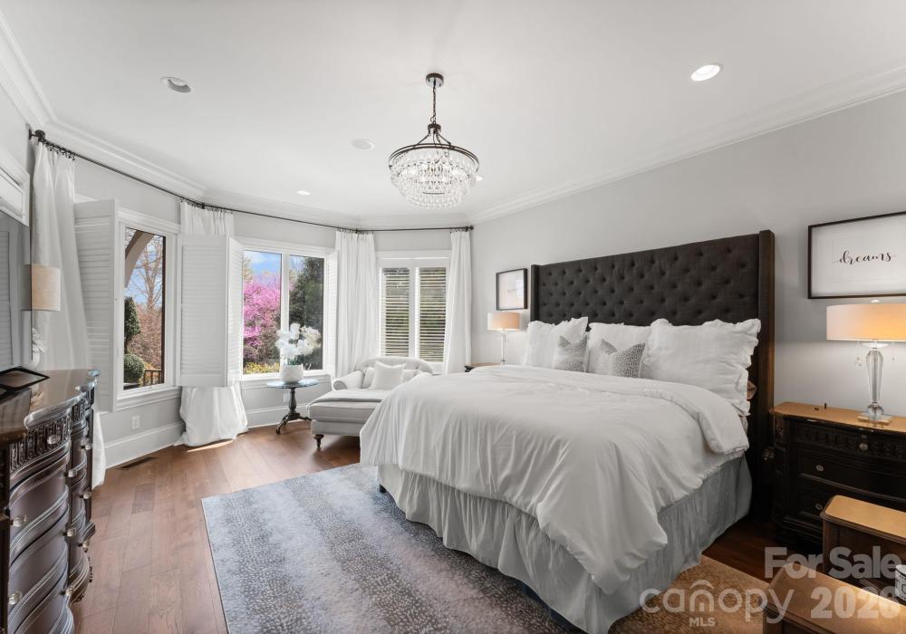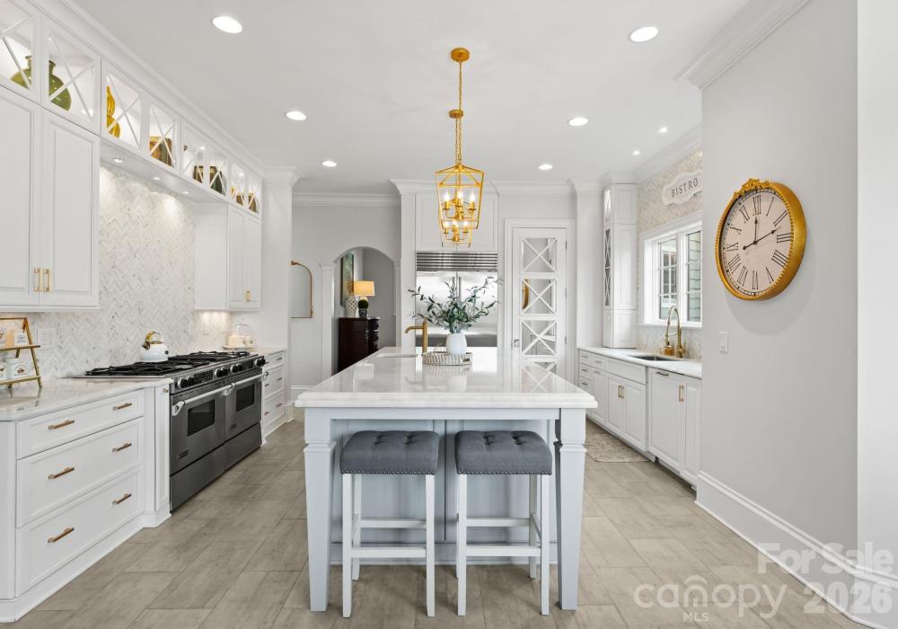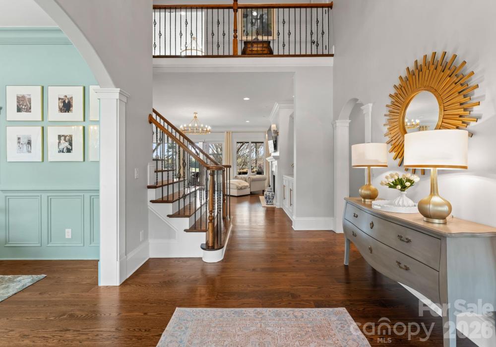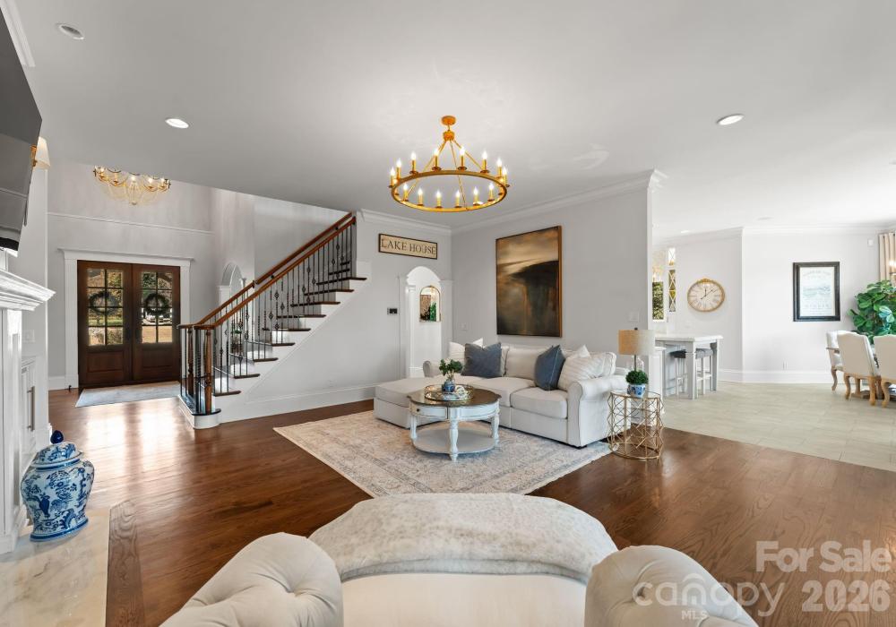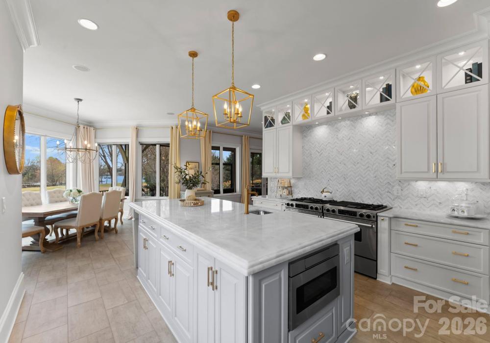 Set along the 14th hole of Trump National Golf Club Charlotte, this exceptional residence captures sweeping golf course vistas paired with tranquil water views, offering a setting that is picturesque. From the moment of arrival, the home’s stately presence is undeniable, elevated by the expansive zoysia turf yard and thoughtful southern landscape. A grand two-story foyer introduces the thoughtfully designed interior, where classic elegance meets modern comfort. A richly appointed wood-paneled study with custom beams provides a refined workspace, while the formal dining room is accented in a sophisticated Tiffany blue creating an inviting space for entertaining. The main living area is warm and welcoming, seamlessly flowing into an expansive screened porch designed for year-round enjoyment. At the heart of the home, the light-filled chef’s kitchen is both beautiful and functional, featuring an oversized center island, marble countertops, and seamless connection to the sunlit breakfast room. The main-level owner’s suite serves as a private retreat, showcasing serene views and a spa-inspired bath complete with a freestanding soaking tub and heated marble floors. Outdoors, the home truly shines. A resort-style backyard oasis features a zero-entry pool with a cascading rock waterfall, an expansive flagstone patio, and a striking wood-burning fireplace—perfect for both intimate evenings and lively gatherings. This home also has a brand new roof (2026!) as well as a tankless hot water heater. A deeded boat slip (Pier O, Slip 11), just a short walk away, provides convenient access to Lake Norman, completing the ultimate lake and golf lifestyle. This is a rare opportunity to experience elevated living in one of the area’s most coveted communities.