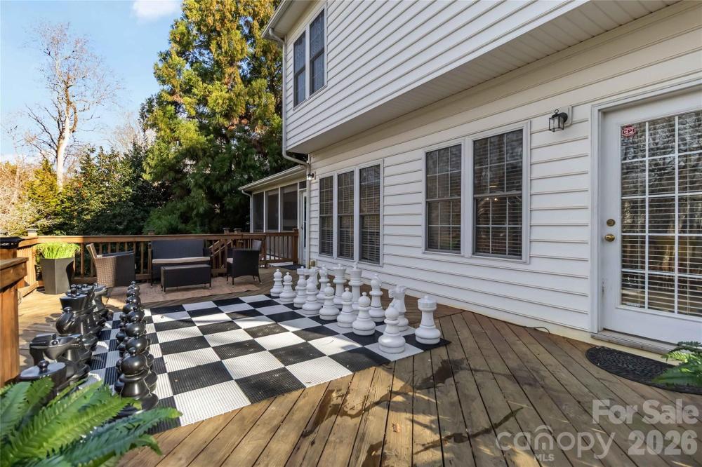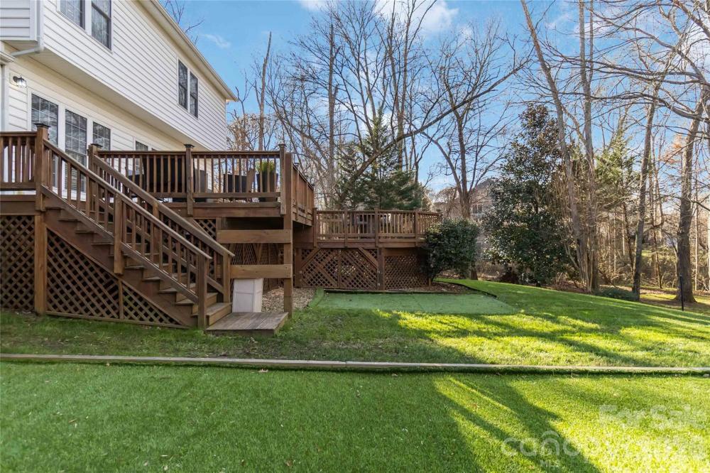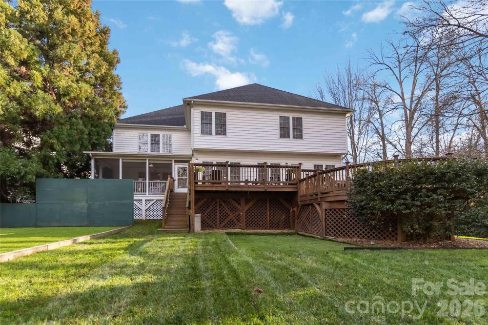 Discover the home with the BEST BACKYARD IN ALL OF MACAULAY at 14211 Harvington Drive. Set on a private, wooded lot, this beautiful 5-bedroom, 2.5-bath home features a truly exceptional outdoor living experience with a 24’x48’ turf lawn and rebounder wall, a large custom-built deck with accent lighting, and an expansive screened-in porch, all surrounded by mature trees and privacy. Inside, the home offers warm, inviting living spaces, including a bonus/rec room, and an open kitchen with brand new QUARTZ COUNTERTOPS, herringbone backsplash and an island with new stove range that flows effortlessly into the dining and living areas. Thoughtful details— newly refinished wood floors, built-ins, a gas fireplace, a whole-house speaker system, CAT5 wiring, a tankless water heater, and abundant storage—enhance comfort and convenience. Fresh paint throughout and BRAND NEW CARPET make this home feel better than new! An extra parking pad and a 6-zone irrigation system add even more value. Located in one of Huntersville’s most sought-after neighborhoods, residents of MacAulay enjoy incredible amenities like a pool, clubhouse, tennis courts with pickleball lines, playgrounds, and scenic neighborhood parks, including the waterfall and creek parks. NEW ROOF 2021. NEW HVAC 2016/2023. This is the MacAulay home you've been waiting for!