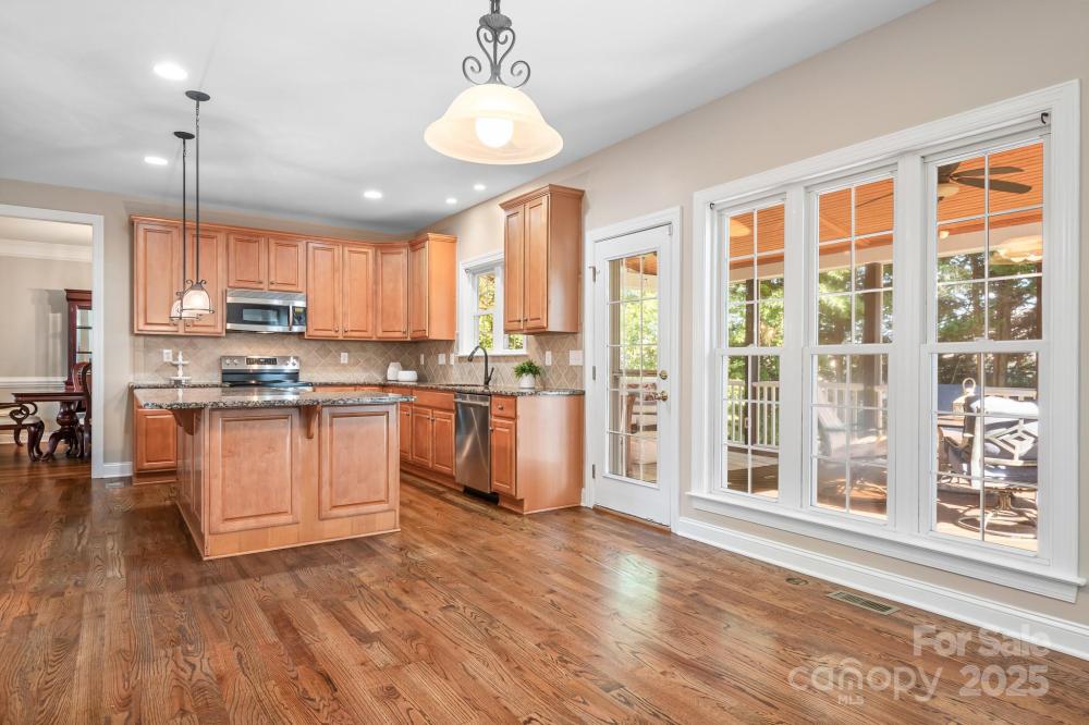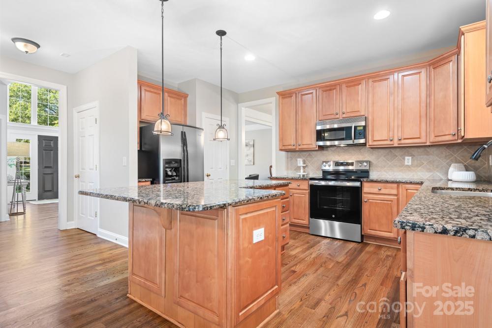 BREAKING NEWS! PREMIUM WATERFALL LOCATION HITS THE MARKET! ONE OWNER! Beautifully situated in the sought-after MacAulay neighborhood in Huntersville, North Carolina. This charming home offers six bedrooms, four full baths, with over 3800 square feet and sits on a generous 0.23-acre lot with A 3-CAR GARAGE (3RD CAR AREA IS TANDEM). Enjoy stunning views of the neighborhood waterfall, green space, gazebo and dog park—visible from the front windows throughout the home and front porch. All hardwood floors extend throughout the main level, featuring a chef’s kitchen with granite countertops, upgraded cabinetry with glass-front accents, a large island with seating, and a breakfast area that opens to the family room. Spacious family room has lots of natural sunlight, overlooks the screened porch and has a cozy gas fireplace. Keep the door open and let the fall breeze come in while enjoying indoor and outdoor living space to entertain or just hang out and relax. The main-level flex room with french doors and a closet currently serves as an office but also functions perfectly as a bedroom, with a full bath just steps away—ideal for guests or multi-generational living. Upstairs, you’ll find four spacious bedrooms, including the primary suite, plus a generous 6th bedroom/bonus room that offers serene waterfall and park views. MacAulay residents enjoy resort-style amenities, including a clubhouse, pool, tennis and pickleball courts, playground, ponds, several parks and picnic areas, and scenic walking trails. This active community is known for its beautiful landscaping, friendly atmosphere, and convenient location—just minutes from Birkdale Village, I-77 and Lake Norman. Easy commute to Uptown Charlotte and Charlotte-Douglas airport. Residents walk and/or bike to top-rated Grand Oak Elementary and St. Mark schools in the morning and afternoons together. Enjoy peaceful waterfall views every day from this prime location in one of Huntersville’s most picturesque neighborhoods! Homes surrounding this iconic park in MacAulay don't hit the market often!