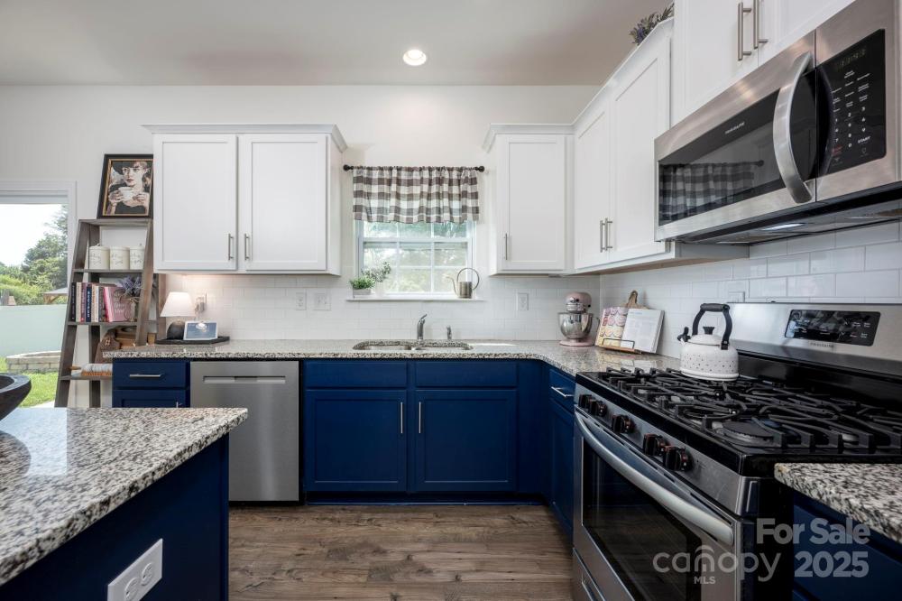Welcome to this super cute home tucked into an established, quiet neighborhood with fantastic amenities, including an outdoor pool and playground — perfect for enjoying sunny days and connecting with the community. Curb appeal shines with a partial stone exterior and welcoming front porch. Step inside to a freshly painted interior with a spacious, open layout and upgraded lighting throughout. The kitchen is a true highlight, featuring two-tone cabinets, granite countertops, stainless steel appliances, and stylish finishes that make it both functional and beautiful. Upstairs, the oversized primary suite provides a relaxing retreat, while the large secondary bedrooms offer flexibility for guests, a home office, or play space. With over 2,700 square feet, this meticulously maintained home combines space, comfort, and location — just minutes from the heart of downtown Mooresville. Don't miss your chance to make it yours!
