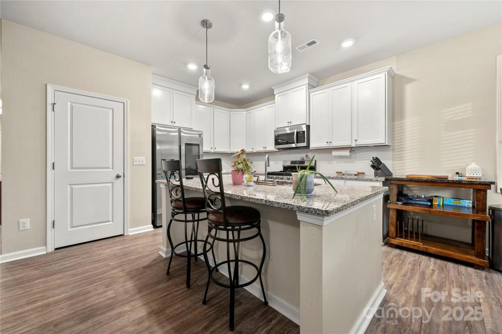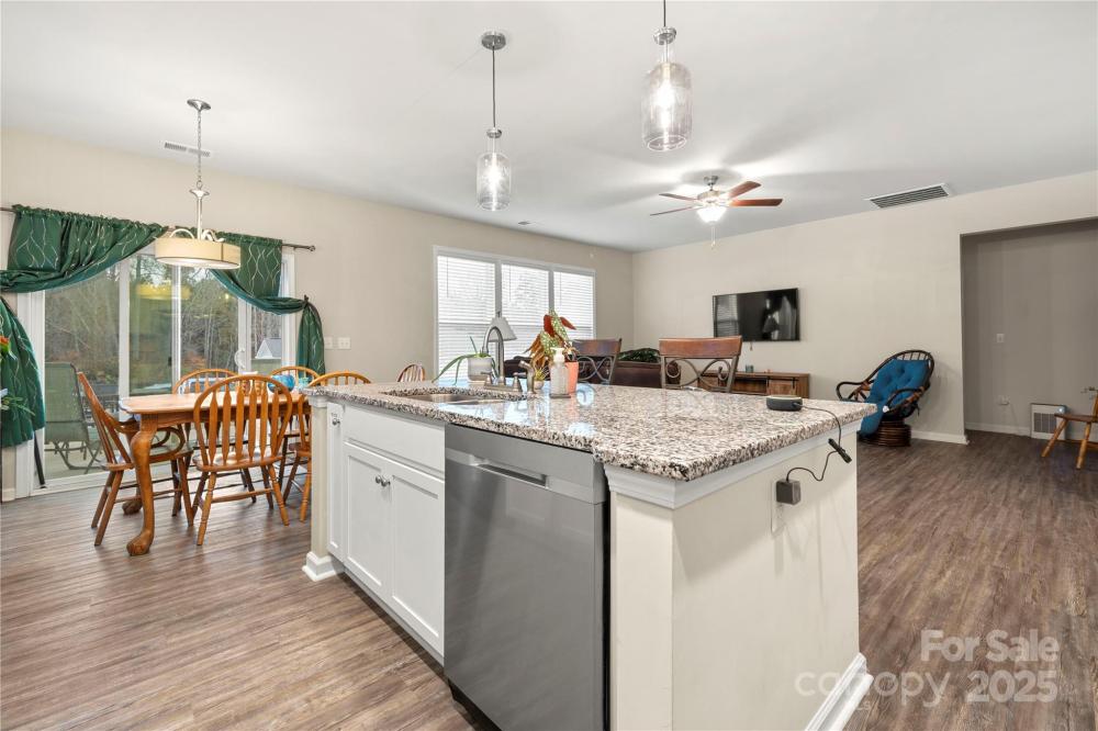 Welcome home to highly desirable Kinsley in Denver! This 3 bed 2 bath ranch with 2 car garage in a wonderful 55+ community is Move-In ready and waiting to be your next home! Open floorplan offers roomy kitchen featuring a breakfast island with pendants, stainless steel appliances, gas stove, granite, plenty of work and storage space. Large living area and dining area that opens to fenced backyard with concrete patio perfect for entertaining. Primary bedroom features lovely en-suite with dual vanity, big walk-in shower, large walk-in closet. Two more bedrooms share full bath. Laundry room, pantry, LVP, ceiling fans, neutral colors thru-out. Lawn maintenance inc with HOA. Excellent location convenient to shopping, dining, Hwy 77 and 485, and gorgeous Lake Norman. This is the one you have been searching for!