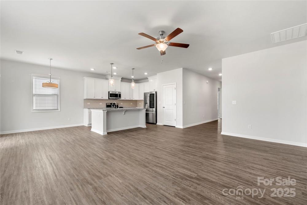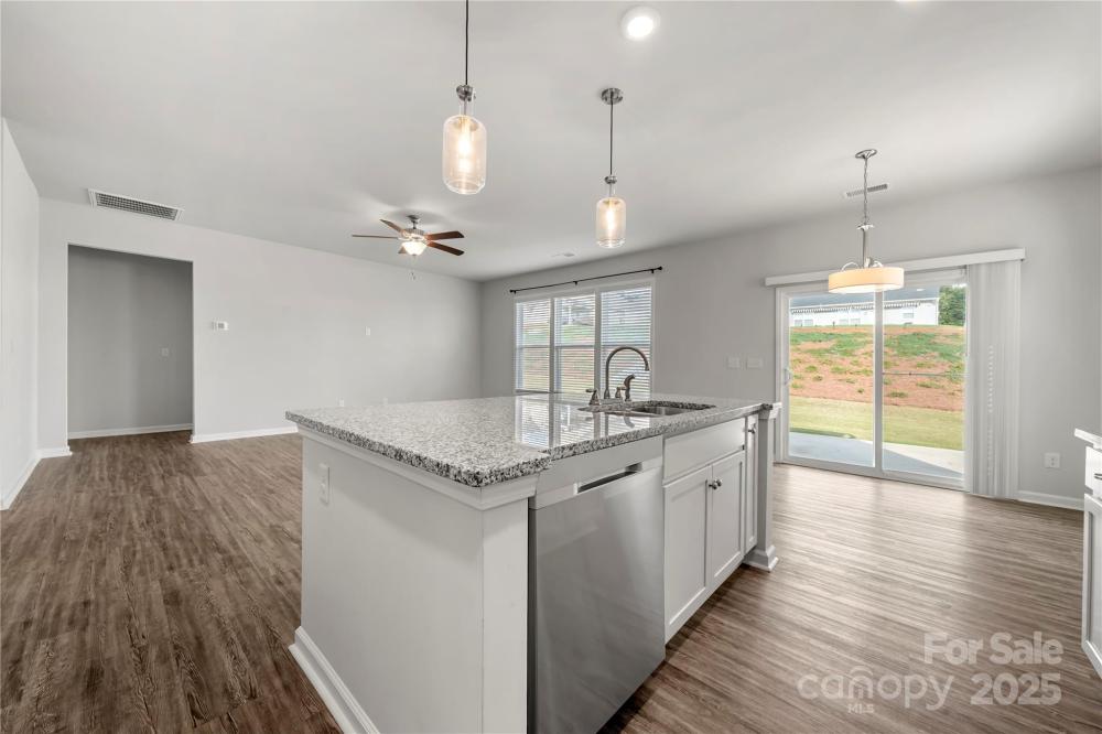 Welcome home to highly desirable Kinsley in Denver! This 3 bed 2 bath ranch with 2 car garage in a wonderful 55+ community is Move-In ready and waiting to be your next home! Open floorplan offers roomy kitchen featuring a breakfast island with pendants, stainless steel appliances, gas stove, granite, plenty of work and storage space. Large living area and dining area that opens to backyard with concrete patio perfect for entertaining. Primary bedroom features lovely en-suite with dual vanity, big walk-in shower, large walk-in closet. Two more bedrooms share full bath. Laundry room, pantry, LVP, ceiling fans, neutral colors thru-out. Lawn maintenance inc with HOA. Excellent location convenient to shopping, dining, Hwy 77 and 485, and gorgeous Lake Norman. This is the one you have been searching for!