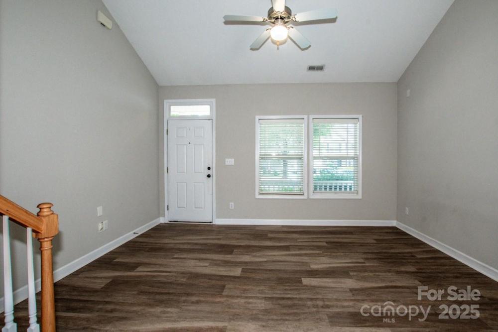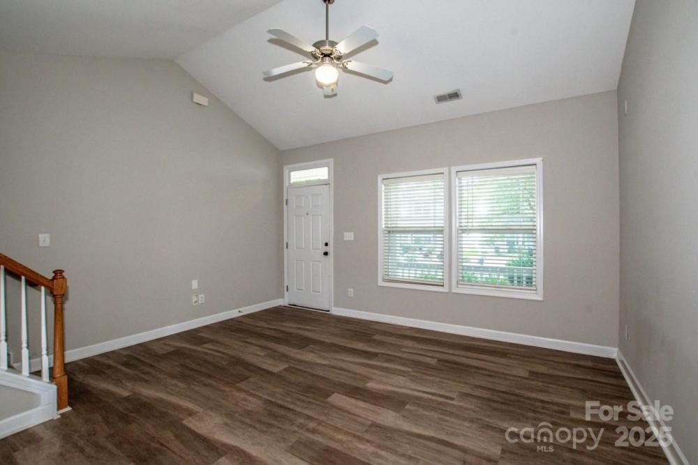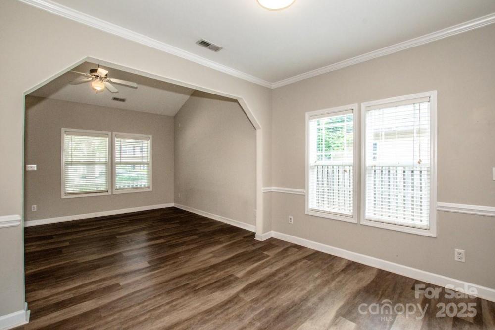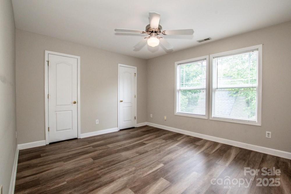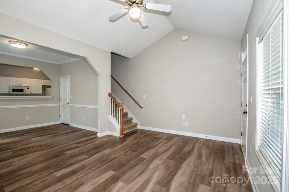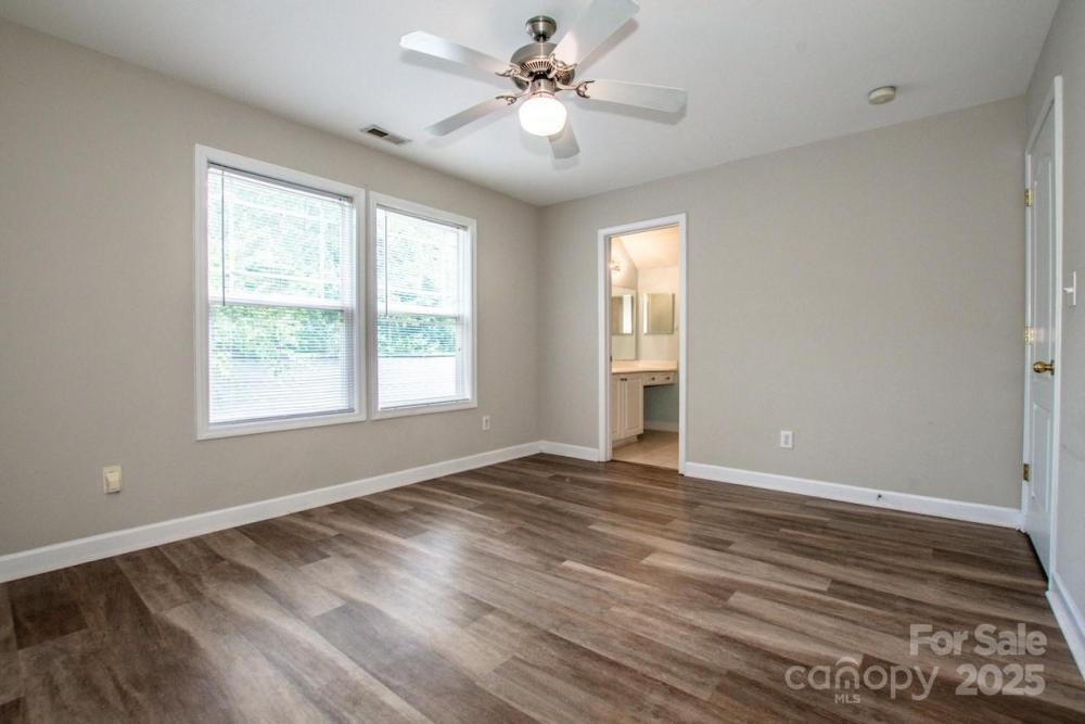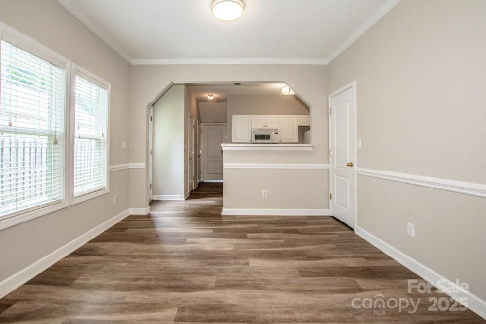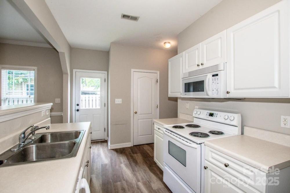 Incredible opportunity to own this end unit townhome in the sought after Crosswinds community of Huntersville. Featuring 2 bedrooms and 2 full baths, this home offers a rare main level bedroom with two closets and a full bath. Upstairs you will find a spacious second bedroom with ensuite bath plus convenient laundry area with washer and dryer included. The home has attractive low maintenance LVP flooring, fresh interior paint, and carpets that have been professionally cleaned. Recent updates include a brand newer HVAC system and a new paver patio with privacy fence, perfect for relaxing or entertaining. Rear parking pad provides easy access. HOA dues are very inexpensive, making this one of the best values in the area. Ideally located near I 77, I 485, shopping, dining, and Novant hospital. Homes in this neighborhood move fast so schedule your showing today before this one is gone.