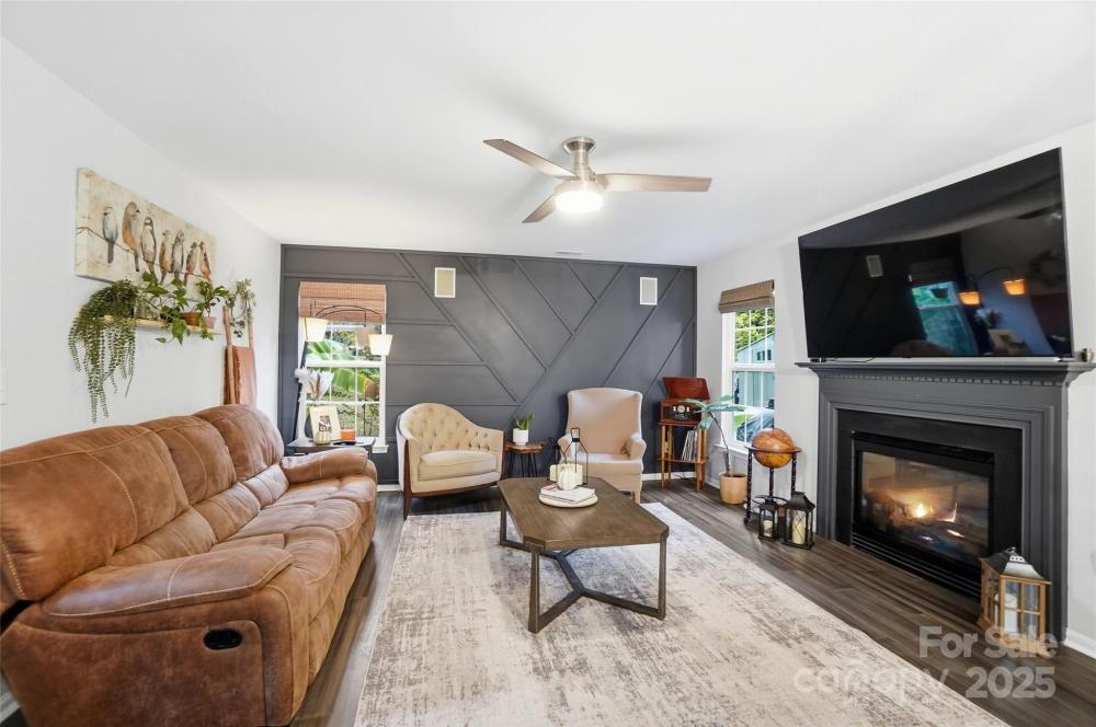 nearly 2,200 square feet of finished living space with an open-concept floor plan, laminate and tile flooring, and a cozy gas log fireplace in the main living area.