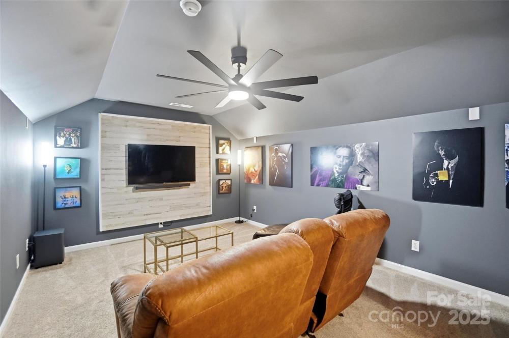 The large upper-level bonus room is currently set up as the ultimate movie room. This versatile space offers a fantastic entertainment zone but can easily be converted back to a bonus room or fourth bedroom to suit your needs.