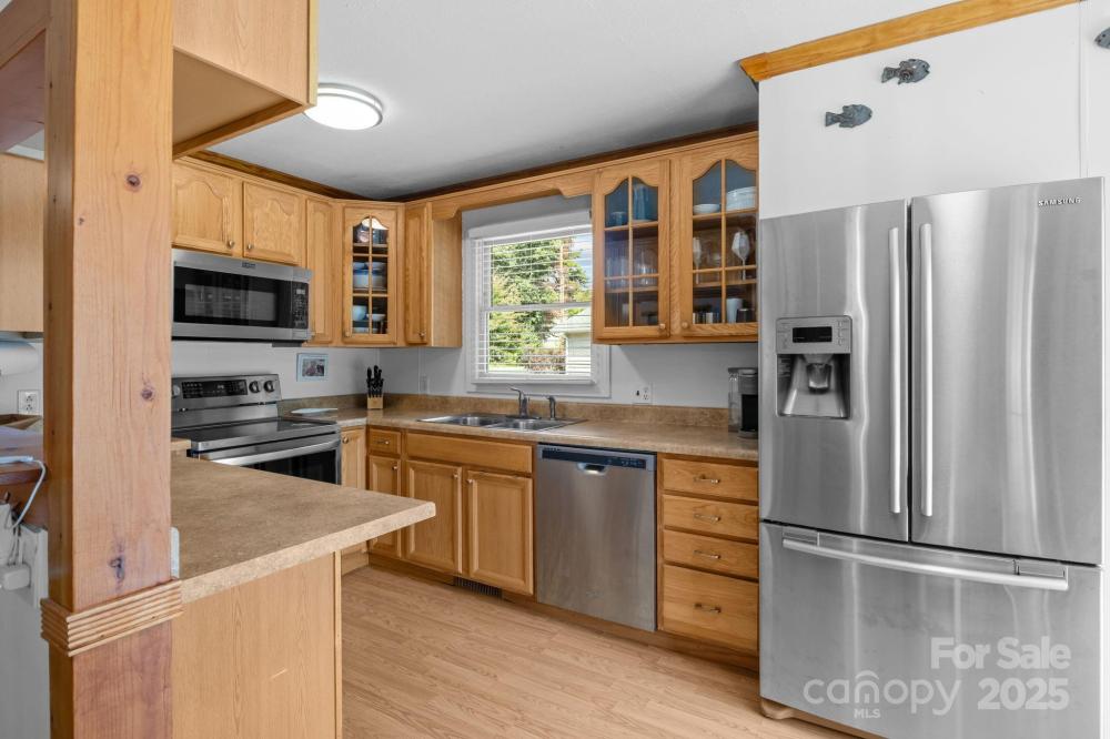 Inside, the home offers 3 bedrooms, a small bonus room with closet, a cozy family room, and a newly built walk-out deck with water views. The walk-out basement extends your living space with a covered porch, beautifully landscaped flat backyard, and a fully fenced lawn to secure your furry family members. Downstairs also features a second kitchen, den, and versatile flex space currently used as an office & man cave —perfect for guests or extended stays.