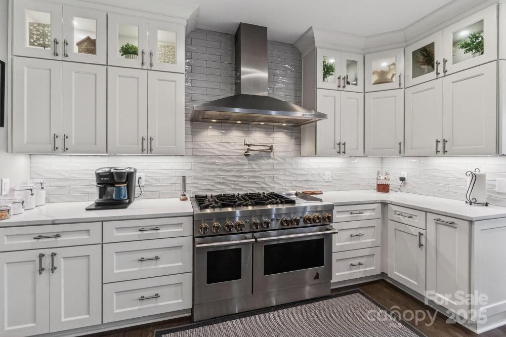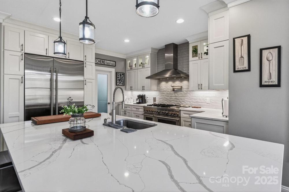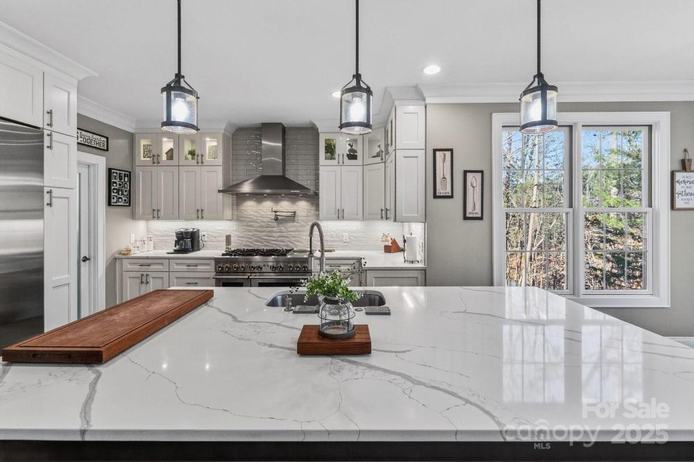 Perfectly positioned along a tranquil cove on Lake Norman and surrounded by mature trees, this beautifully remodeled 6 bedroom, 4 1/2-bath residence with a 3-car garage, located in sought after Lakewood subdivision, offers an exceptional blend of privacy, elegance, and modern comfort. Thoughtful details define this home, from rich hardwood floors and refined crown molding to tray ceilings and custom built-in shelving. Home comes with a gourmet chef-inspired kitchen which anchors the main living space, featuring high end stainless steel appliances, a gas range with griddle and double ovens and quartz countertops. Adjacent pantry with plumbing to add secondary laundry space if Desired. Home is designed to effortlessly accommodate both intimate gatherings and grand entertaining. The main-level primary suite serves as a serene retreat, complete with a spacious walk-in custom built closet and a spa-inspired elegant bath with a spectacular walk in shower, soaking tub and dual vanities.