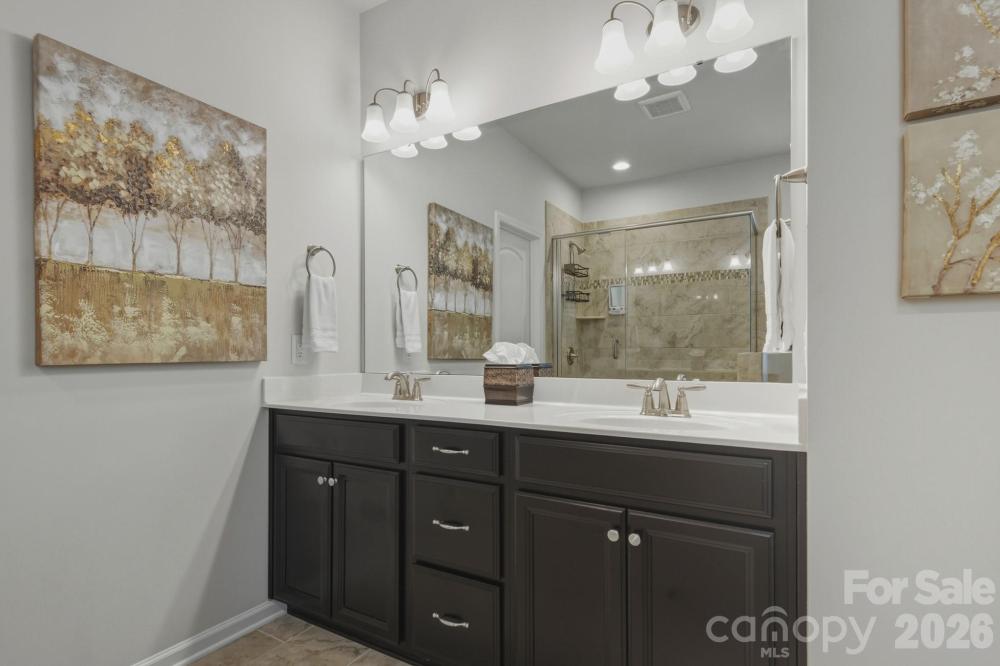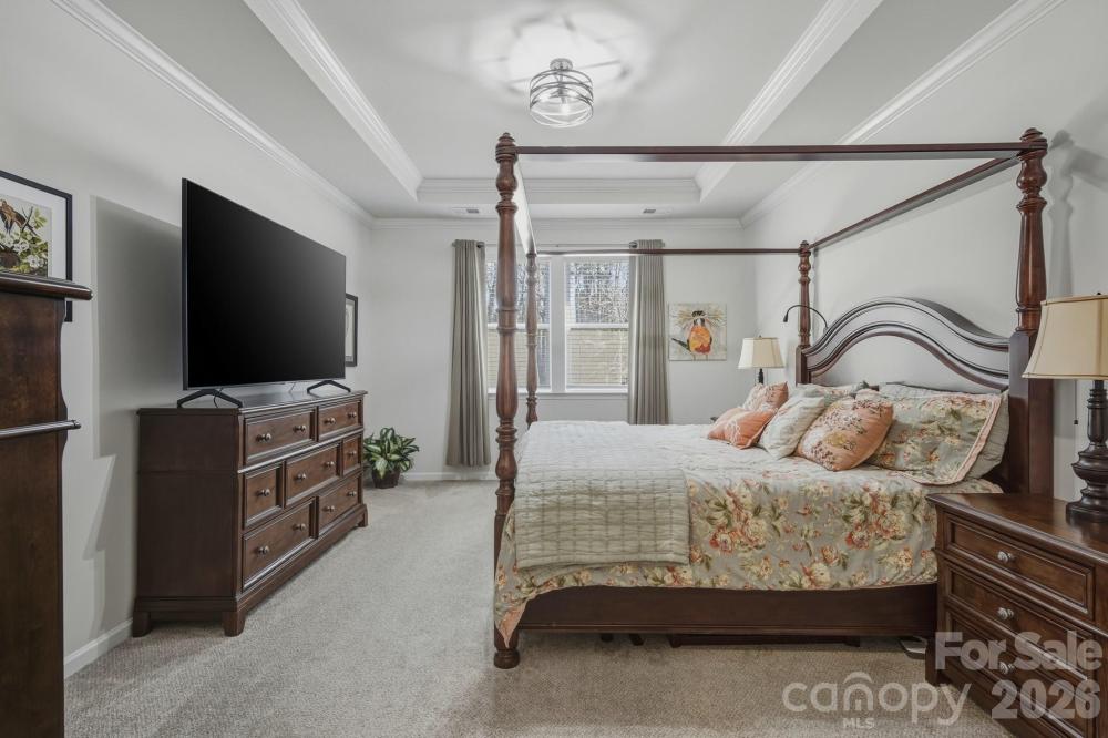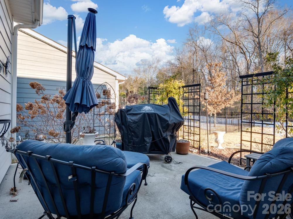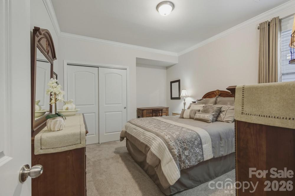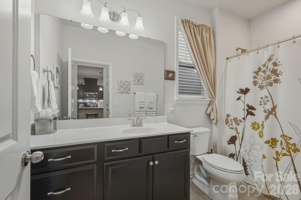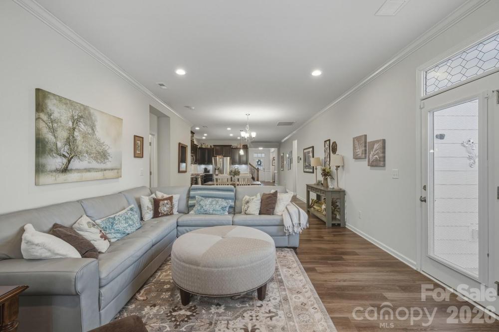 Like-new and impeccably maintained 4-bedroom, 3-full-bath home featuring a primary suite on the main level with dual closets and a private en-suite bath. The main level boasts beautiful LVP flooring throughout and an open, spacious layout. The well-appointed kitchen offers granite countertops, a walk-in pantry, and new dishwasher and refrigerator (12/2025). Crown molding enhances the home throughout, and just off the front entry you’ll find a versatile flex space with custom built-in bookshelves—perfect for a home office or sitting area. Generously sized secondary bedrooms provide ample space for family or guests. Upstairs, enjoy a loft area, an additional bedroom, a full bath. Step outside to relax on the patio overlooking a landscaped , wooded backyard. Located in a desirable neighborhood just minutes from all that Huntersville has to offer, with convenient access to Hwy 1485, I-77, and I-85.