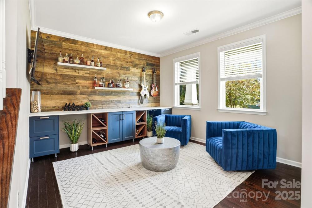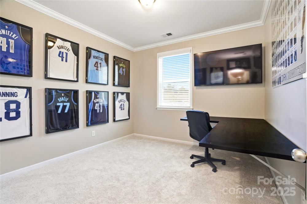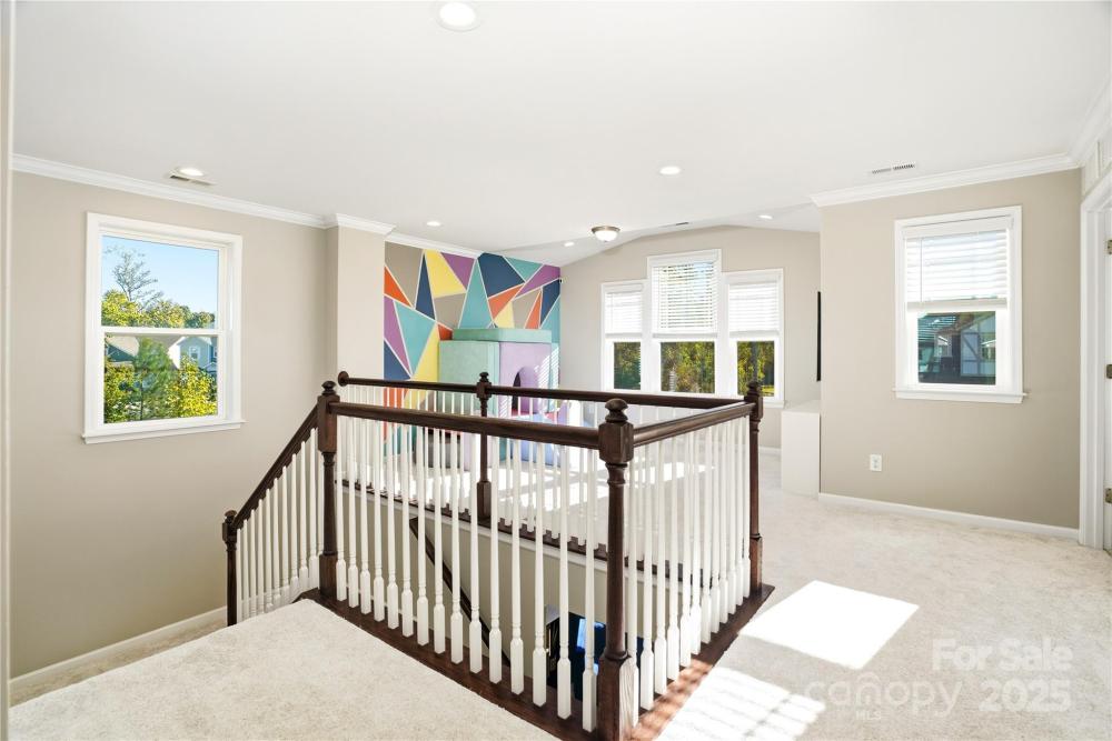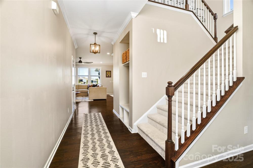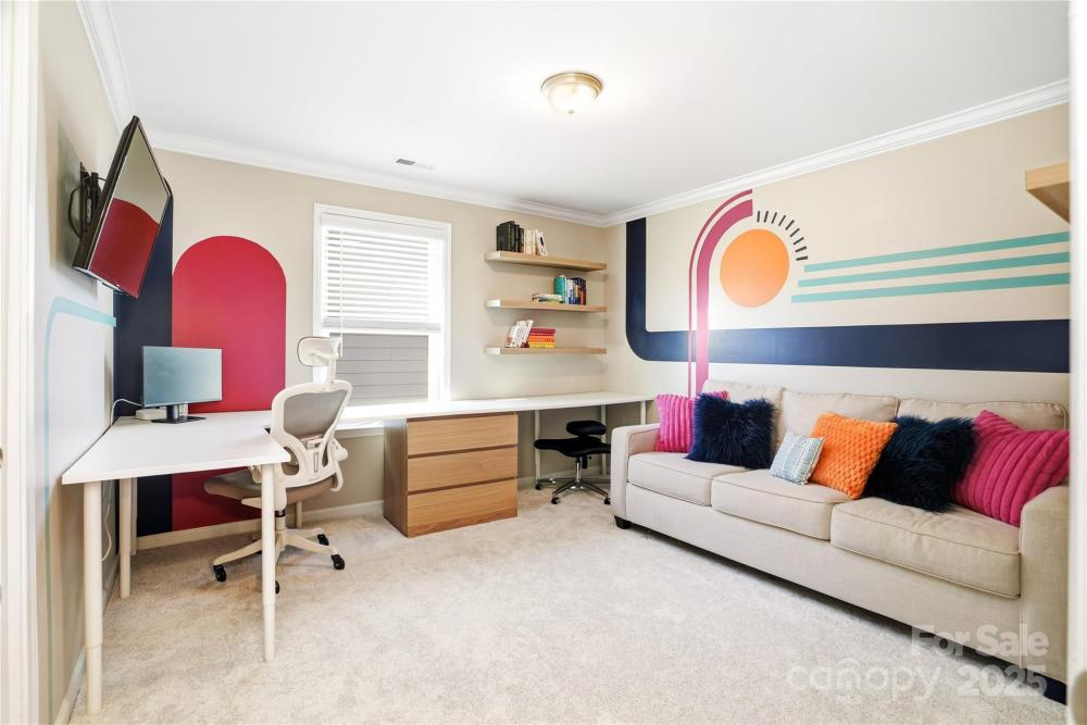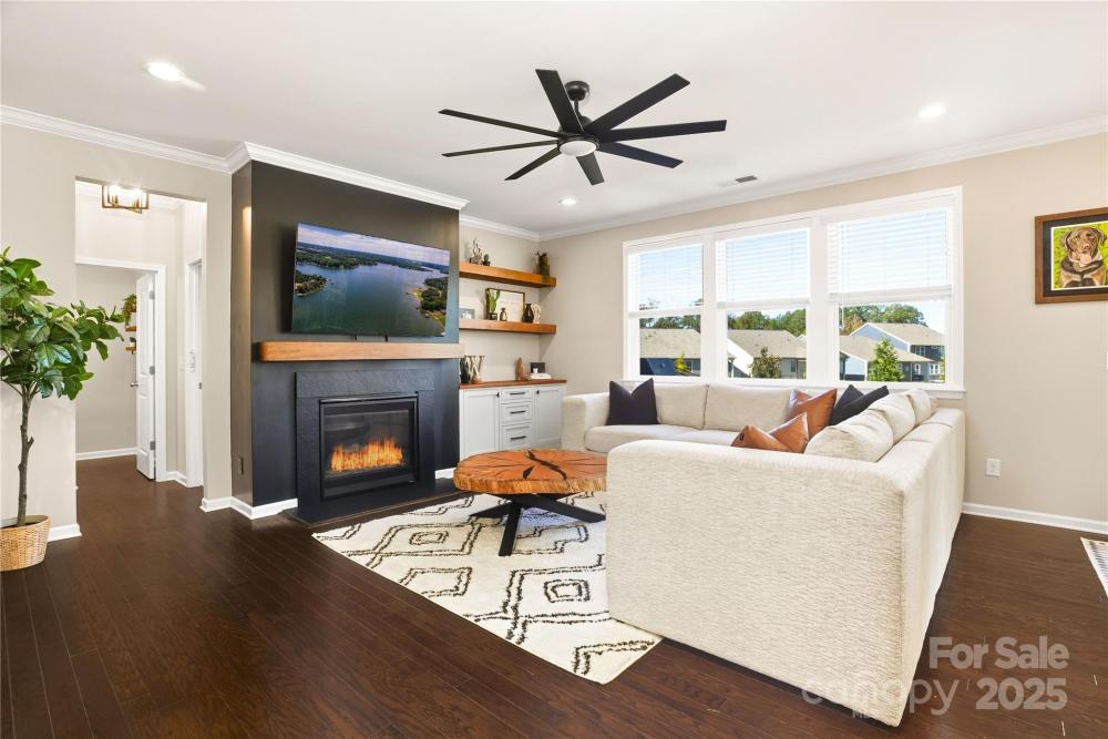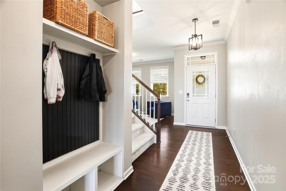 Located in the Magnolia Walk neighborhood of Huntersville, this home has been beautifully maintained and thoughtfully upgraded inside and out. The backyard features a retaining wall along the fence line to create a level yard, lush landscaping with trees, a full fence, and an extended paver patio with a large covered section including electrical and a TV mount—ideal for relaxing or game days. Inside, enjoy new carpet (Sept 2025), fresh paint (Oct 2025), and upgraded light fixtures and fans (2022–2025). Custom details include built-ins beside the fireplace with a solid wood mantle, cabinetry in the front room, closet organizers (2021), and window coverings throughout. The main level offers hardwood floors and a flexible office or guest bedroom, while upstairs includes a spacious loft perfect for play or work, a convenient laundry, and generous bedrooms. Excellent community close to the Huntersville Aquatic Center, shopping, dining, the airport, and Uptown Charlotte.